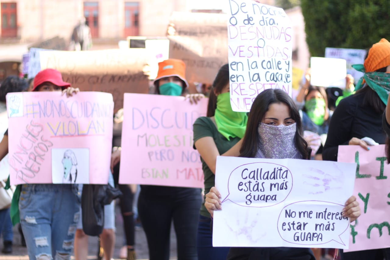 Alrededor de las 18:00 horas, las participantes se reunieron en la Plaza Benito Juárez de la capital michoacana, donde con la consigna #NoMeCuidanMeViolan demandaron justicia para las víctimas de agresiones sexuales, además que de que clamaron por el respeto a sus derechos y un alto al acoso y peligro al que están expuestas.