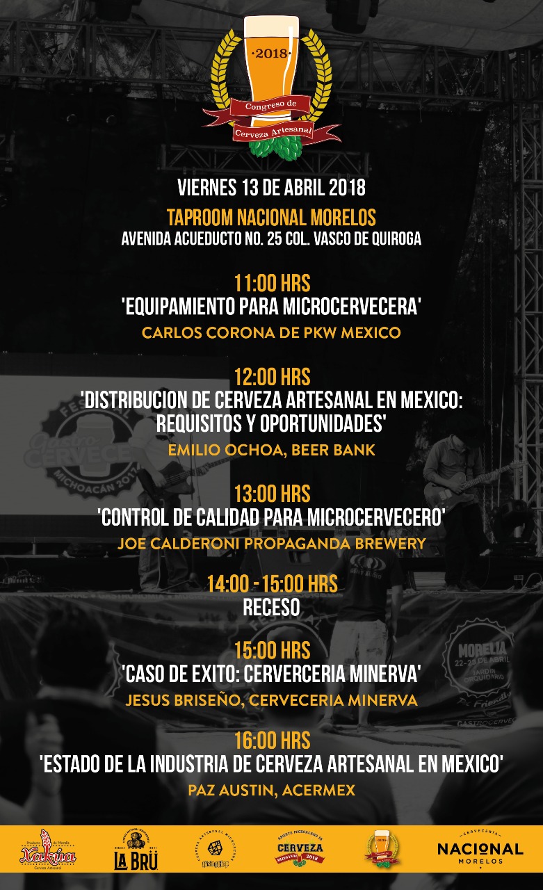 Morelia, Michoacán. Un ciclo de conferencias sobre la distribución, calidad y el contexto de la cerveza nacional se llevará a cabo el viernes 13 de abril en Taproof Nacional Morelos, ubicada en Avenida Acueducto #25 Col. Vasco de Quiroga Morelia.