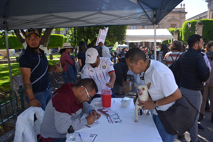 Redacción / La Voz de Michoacán Morelia, Michoacán. El Centro de Atención Animal (CAA) del Ayuntamiento de Morelia celebró una Feria de Adopción donde se ofertaron 15 perros y dos gatos para adopción bajo previo análisis de los interesantes, en la plaza de Armas. Margarita Yareli López Arroyo, directora de Servicios Auxiliares, señaló que además hay otros 20 animales en el CAA. Asimismo se otorgaron vacunas antirrábicas y se espera que en fechas próximas se den otros servicios como estética canina. Durante el evento también se presentó el logotipo oficial de, CAA el cual fue escogido de entre 23 participantes. Dicha imagen fue realizada por el comunicólogo Sergio Vázquez, quien recibió un reconocimiento por su trabajo.