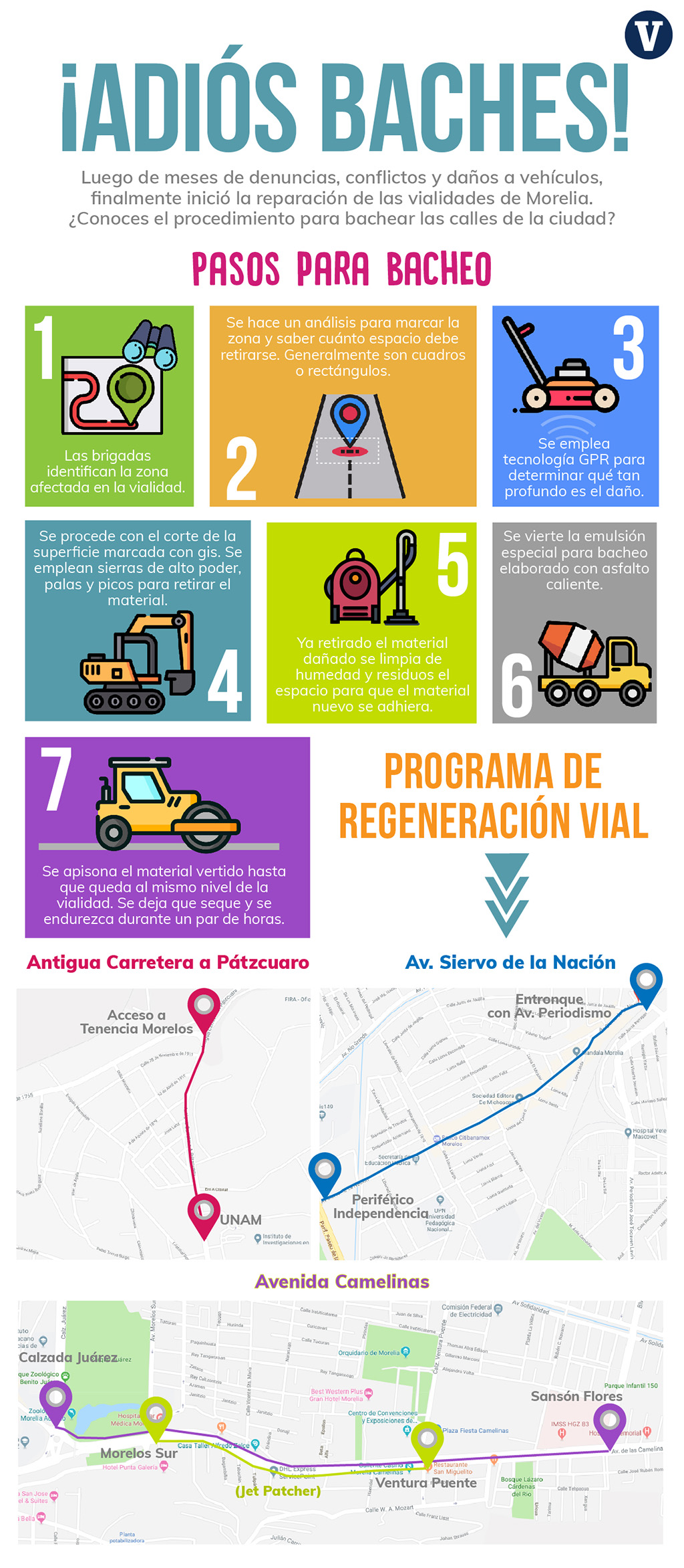 Redacción / La Voz de Michoacán Morelia, Michoacán. La atención a la infraestructura vial de la ciudad es prioritaria para el Ayuntamiento de Morelia mediante los trabajos de la Secretaría de Urbanismo y Obra Pública y el programa “Regeneración de Vialidades” por primera ocasión se trabaja en 2 turnos, matutino y vespertino de lunes a sábado, además de domingos por la mañana, con lo cual se ha logrado reparar de manera integral 52 calles tanto de la zona rural como urbana. Casi 300 personas son las que componen estas brigadas de bacheo, reparación de alumbrado público, atención de áreas verdes y balizamiento, por lo cual se han sumado más empleados a estas labores que se despliegan tanto en vialidades primarias y caminos rurales. El Secretario de Urbanismo y Obra Pública, Sergio Adem Argueta, recordó que se continúa con el diagnostico pertinente para poder conocer el estatus de las calles y avenidas, así como la manera en que se debe intervenir cada una de ellas y que esta atención a la infraestructura vial sea eficaz y duradera. Adem Argueta recalcó que también es innovador el uso de tecnología para realizar esta labor que responde a una de las necesidades más sentidas de los morelianos y para apoyar en la consolidación de una red vial en Morelia, confiable y segura. Los turnos en los que se trabajan son de lunes a sábado desde las 8:00 a las 19:00 horas y en domingo de 8:00 a 14:00 horas, pero es importante aclarar que la mayoría de la calles de Morelia tienen un desgaste de más de 20 años y un abandono evidente, que ha afectado de manera considerable, por lo cual se tiene todos los días reportes nuevos baches por el desgaste y abandono de las mismas, así como por las precipitaciones pluviales que continúan. De manera específica se han utilizado materiales en acciones de bacheo como: Mezcla asfáltica para bacheo; Material de sello; Bultos de mezcla asfáltica en frio; y 88,000 litros de emulsión asfáltica.