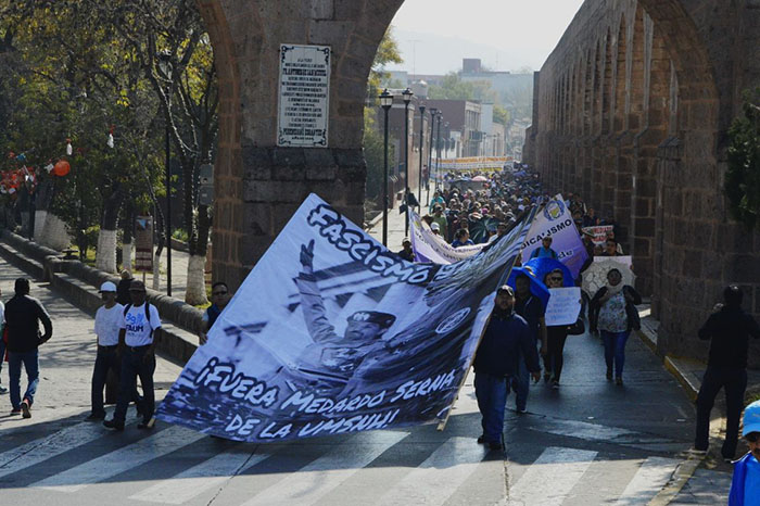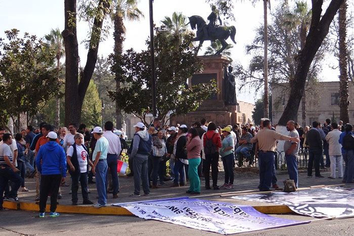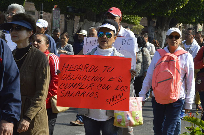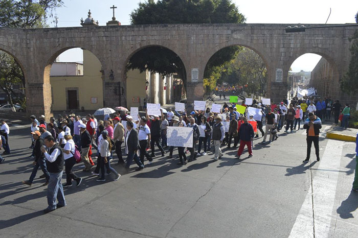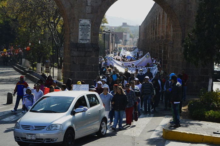 Desde temprana hora se  reunieron en la Plaza Morelia para posteriormente a las 10:30 de la mañana emprender una marcha hacia el primer cuadro de la ciudad, donde exigían el pago de adeudos, así como prestaciones de fin de año.
