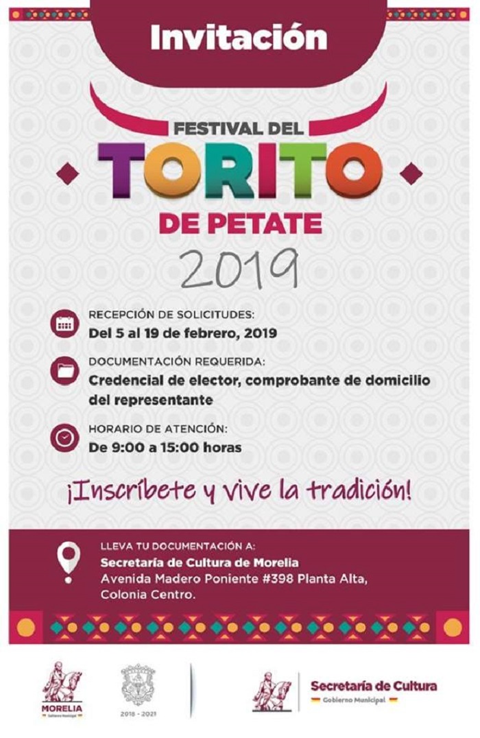 El evento se realizaría en marzo, partiendo de Las Tarascas hacia Catedral. Este espectáculo de colores y tradición será complementado por una banda musical que amenizará el recorrido de los toritos de Petate en su paso frente a la Catedral de Morelia.