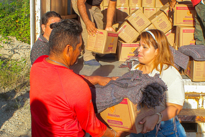 Cd. Lázaro Cárdenas. Dando a atención a los cientos de familias que resultaron afectadas durante las lluvias que dejó el Huracán “Lidia” y la tormenta tropical “Max” en días pasados; este viernes, el Gobierno Municipal a través del Sistema DIF Municipal hizo entrega de 500 despensas y 250 cobijas a familias de la tenencia de El Habillal. Cómo se informó durante la contingencia climática, cientos de familias de El Habillal resultaron afectadas por el desbordamiento del Río Acalpican, por lo que el DIF Municipal, que encabeza la Presidenta Honoraria Clara Zapiain Guajardo, visitó este día la tenencia para hacer entrega de productos de la canasta básica y cobijas, a fin de que puedan sobrellevar esta emergencia. De acuerdo a Esmeralda Ábrego Sotelo, Directora del DIF Municipal, se han realizado recorridos en las zonas afectadas por las lluvias, como es la Colonia Plutarco Elías Calles en Las Guacamayas, la tenencia de Buenos Aires y ahora El Habillal, y en donde también se han hecho entrega de despensas y cobijas. Mientras que Clara Zapiain Guajardo, afirmó que estas acciones son parte de los compromisos que tiene el DIF Municipal con la población, por lo que seguirán dando continuidad a los apoyos que requieran estas familias.