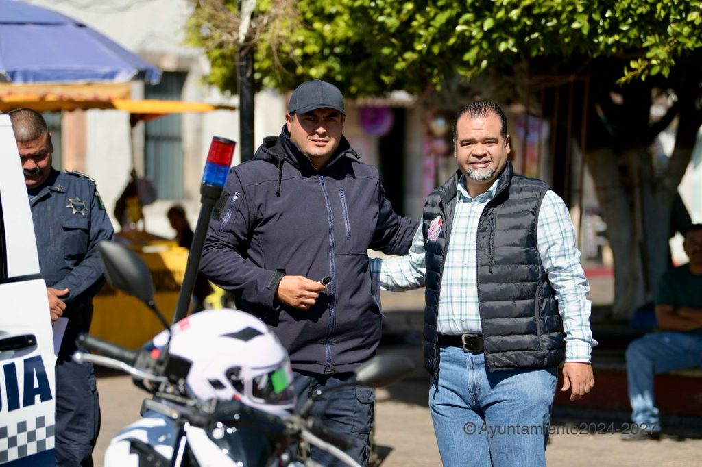 El presidente Víctor Vázquez entregó cuatro patrullas, dos motocicletas, así como uniformes para los elementos.