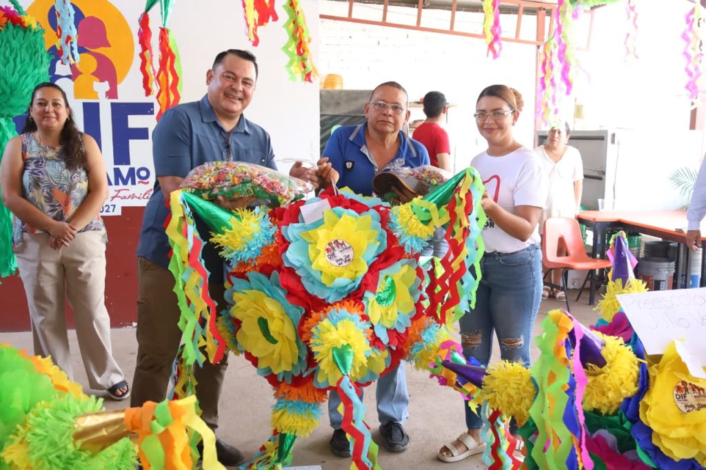 Para llevar alegría a las instituciones educativas, el Ayuntamiento de Huetamo y el DIF Municipal que dirige la maestra Nancy Zarco, entregaron piñatas que fueron elaboradas por personal de la Casa de la Cultura, Estancia del Adulto Mayor y DIF. El alcalde Pablo Varona dijo también se les haría entrega de dulces para que los niños en las diferentes escuelas disfrutaran al máximo su día. Foto: Cortesía. Por su parte la presidenta del DIF, reconoció la gran labor de casi 4 meses que realizaron para tener listas estas piñatas para las escuelas que hicieron su solicitud en tiempo y forma. Redacción / La Voz de Michoacán Foto: Cortesía. Foto: Cortesía. Foto: Cortesía. Foto: Cortesía. Foto: Cortesía.