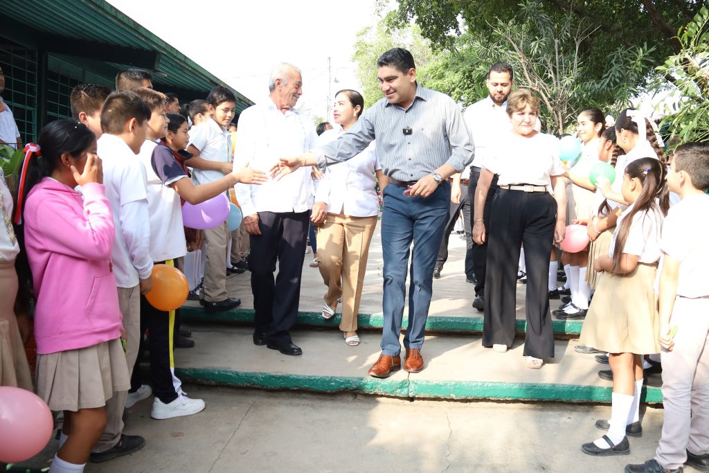 La directora del plantel, Magaly Torres Arias, padres de familia, maestros y alumnos recibieron con júbilo al alcalde, agradeciéndole por la realización de esta obra.