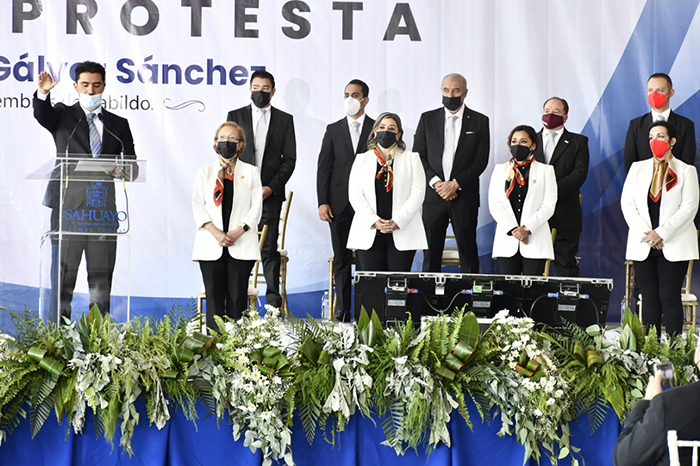 Redacción / La Voz de Michoacán Sahuayo, Michoacán. Este mediodía en el Centro Regional de Exposiciones de Sahuayo, rindió protesta como presidente municipal Manuel Gálvez Sánchez como presidente Municipal para cubrir el periodo 2021-2024, en ceremonia solemne. Para el efecto de constituyó como secretario de esta sesión el regidor José de Jesús Melgoza Castillo, quien de acuerdo al orden del día establecido sometió él mismo a consideración de los integrantes del H. Cabildo de esta localidad los ciudadanos: Karla Teresa Hinojosa Pérez, como Síndica Municipal y como regidores: Jesús Melgoza Castillo, Andrea Tejeda Cid, Manuel Ramírez, Gilberto Carrasco, Ruth Gutiérrez Orozco, Susi Buenrostro Ramírez, Jesús Flores Villanueva, Guadalupe Sahagún Sánchez, Raúl González Núñez y José Ávila Ornelas. En presencia del representante del Gobernador del Estado de Michoacán Noe Zamora Zamora, así como de diferentes personalidades de la política estatal, regional y municipal, como también del empresariado, del comercio y sobre todo de la ciudadanía en general. Como se establece en las normas se cumplieron con los actos protocolarios se rindieron honores al lábaro patrio y se entonaron las notas del Himno Nacional, con la participación de la escolta y banda de guerra del tecnológico de Jiquilpan. Una vez tomada la investidura como mandatario municipal Manuel Gálvez Sánchez rindió protesta a los integrantes del H. Ayuntamiento constitucional 2021-2024 acorde a lo establecido a las Constituciones Políticas de los Estados Unidos Mexicanos, la propia de Michoacán y a la Ley Orgánica Municipal vigente en el Estado. En su primer mensaje a la ciudadanía Sahuayense, el alcalde en funciones hizo un llamado a sus compañeros de cabildo y a los Sahuayenses en general a dejar a un lado las banderas ideológicas, porque es tiempo de trabajar por un Sahuayo para todos. “Nuestra tarea es y será llevar acciones en beneficio para los sectores más vulnerables de nuestro municipio”. Por lo que hoy, les dijo, no habrá espacio para la corrupción. Añadió que "trabajaremos la dignidad humana de las personas, teniendo siempre presentes a los olvidados de siempre". El representante del gobernador del Estado, en su intervención, señaló que aunque son tiempos difíciles para gobernar por cuestiones de la pandemia hoy "son tiempos de retos y oportunidades y Sahuayo tendrá un gobierno por los tres años que rendirán nuevos frutos como lo manifestaron en las urnas".