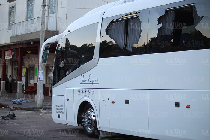 Omar Cuiriz / La Voz de Michoacán Nuevo Parangaricutiro, Michoacán. Cae la noche y San Juan Nuevo quedó prácticamente sin presencia de ninguna autoridad, se siente una tensa tranquilidad en el pueblo. En la plaza principal, rodeada del Palacio Municipal y el famoso templo del Señor de los Milagros, se observan los rastros de un crudo enfrentamiento. Foto: Christian Hernández, La Voz de Michoacán.Foto: Christian Hernández, La Voz de Michoacán.Foto: Christian Hernández, La Voz de Michoacán.Foto: Christian Hernández, La Voz de Michoacán.Foto: Christian Hernández, La Voz de Michoacán.Foto: Christian Hernández, La Voz de Michoacán. Algunos puestos que suelen estar abiertos ofreciendo cajeta y obleas, tienen impactos de bala de grueso calibre. Los comercios donde se vende comida como el típico churipo y las quesadillas fritas, están cerrados. A un costado de la presidencia, se encuentra una escuela primaria, la cual presenta también impactos de bala. Un autobús quedó varado a unos metros de la plaza y la presidencia, se observan todos los parabrisas rotos. El letrero turístico con las letras de “Nuevo San Juan”, luce también con disparos. Solo algunas partes de la plaza están cercadas. Habitantes curiosos en la plaza señalan que un cartel quiso entrar, pero “que no pudieron”.