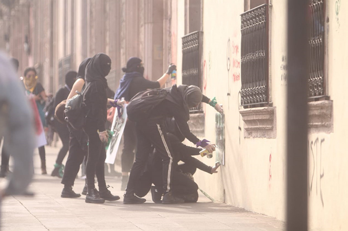 Al llegar al Palacio Legislativo, algunas manifestantes rompieron cristales y realizaron pintas, al igual que en Palacio de Gobierno, donde se detuvo la marcha.