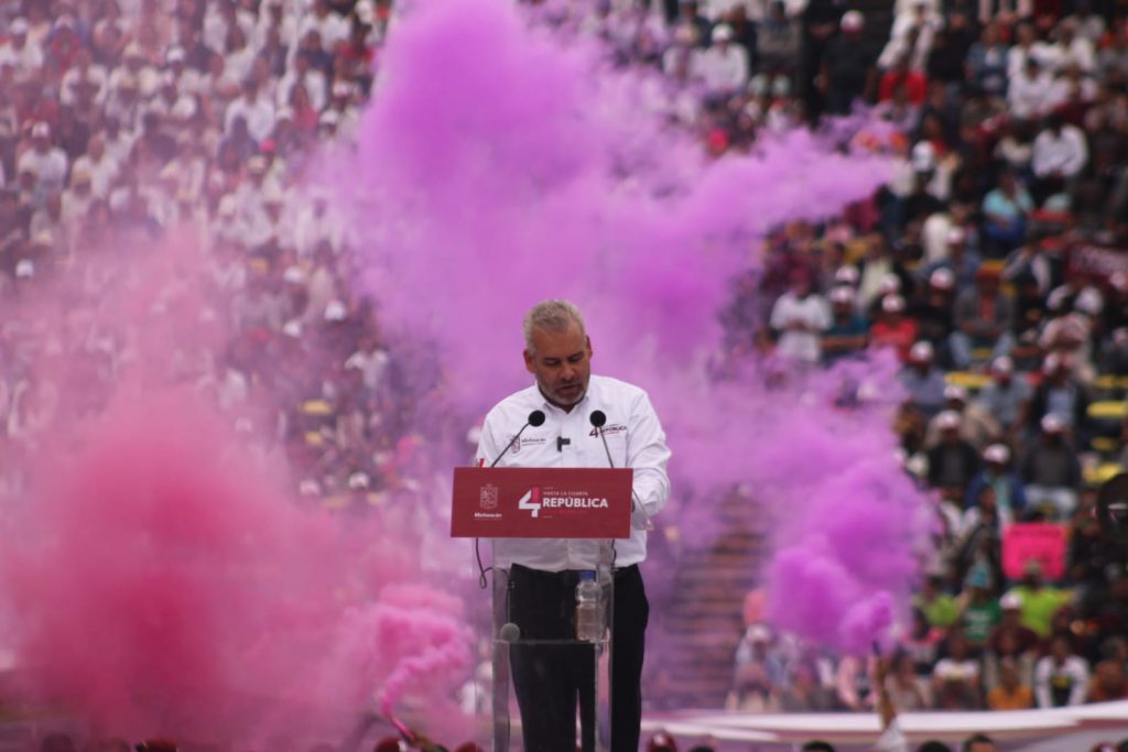 Omar Cuiriz / La Voz de Michoacán Morelia, Michoacán.- Con lenguaje inclusivo, el gobernador morenista dio la bienvenida a todos, todas y todes a la presentación del Plan Morelos. y ante alrededor de 50 mil personas dijo que el objetivo del evento era proponer al resto del país consolidar el tránsito hacia la Cuarta República. “Estamos hablando de que Michoacán le propone al país consolidar el tránsito hacia la Cuarta República, que implicaría la construcción de un Estado socialmente ampliado, pluricultural y ecológicamente responsable”, dijo el gobernador Ramírez Bedolla Mucha expectativa generó durante varios días la convocatoria para asistir al mega evento con características de un cierre de campaña. El mandatario y su equipo lograron que el Estadio Morelos se llenara de ciudadanos e invitados especiales, desde donde presentó novedades en su discurso, mismas que -dijo- busca defender y que tienen que ver con la diversidad. Ante más de 50 mil personas reunidas en el Morelos, Bedolla propuso al país. Foto: Víctor Ramírez, Pero antes de entrar a los temas que han generado debate y divisiones en partidos y la sociedad en las últimas décadas, Ramírez Bedolla hizo un recorrido histórico de las tres trasformaciones que ha tenido el país, haciendo referencia al discurso del presidente Andrés Manuel López Obrador. El gobernador elogió el trabajo del presidente de México durante todo el evento y fuer claro en mencionar que lo hecho por López Obrador debe consolidarse y seguir replicándose, sobre todo la lucha por lo pobres, contra la corrupción y obligando a los que más tienen a pagar impuestos y tener responsabilidad social. Alfredo Ramírez Bedolla aseguró que como gobiernos obradoristas se rigen por los principios de la libertad, humanismo, justicia, pluralidad, tolerancia, inclusión y participación ciudadana. Con el pueblo todo, sin el pueblo nada. Sin profundizar, el mandatario apostó por respetar la diversidad de género, en un momento donde la oposición de extrema derecha son claros en no aceptar a la comunidad LGBTQ+ ni la libertad de las mujeres en decidir sobre su cuerpo. “Nuestra misión es generar un debate plural e incluyente que impulse reformas y cambios profundos, jurídicos y administrativos, mediante leyes y modelos de organización basados en las necesidades actuales”. Agregó que el gobierno de la 4T lucha fuerte por consolidar el tránsito a un Estado pluricultural con pluralidad de culturas, tal y como siempre lo planteó el filósofo Luis Villoro. Foto: Víctor Ramírez QUE ESTE YA EN LA CONSTITUCIÓN El giro trascendental de la convocatoria, consistió en la insistencia de que deben elevarse a un rango constitucional varios temas entre ellos los sociales y de medio ambiente, como: -La libertad de las mujeres a elegir sobre su cuerpo “Esta agenda coloca otra alta prioridad: lograr el ejercicio de los Derechos Humanos de las Mujeres, para ello, es preciso reconocer los derechos sexuales y reproductivos, destacando el derecho de todas las mujeres a decidir sobre su cuerpo”, dijo. -Cuidado de los bosques “Debemos aumentar exponencialmente las áreas naturales protegidas, las reservas ecológicas, los parques nacionales, así como contemplar un gran programa de remedición ambiental. Donde la sustentabilidad de bosques y selvas serán responsabilidad de todos, principalmente, del sector productivo y la industria, garantizando aportaciones de recursos para su preservación”. -Austeridad “Tenemos que asentar en las leyes los principios de este movimiento. Que todos los gobiernos se tengan que regir bajo el principio de austeridad republicana, no puede haber gobierno rico y pueblo pobre. Nos asumimos como parte de una generación que no lucha por cargos públicos o por amasar fortunas y mantener el poder; somos una generación que entiende que nuestra trascendencia está en la defensa de nuestra patria y de lo alcanzado en esta Cuarta Transformación”. -Pueblos indígenas “Hoy, 35 comunidades en Michoacán ejercen plenamente sus derechos constitucionales, y proyectamos que al final de nuestro gobierno, Michoacán sumará 130 comunidades que ejerzan su presupuesto directo. Hemos ampliado los derechos generando políticas de Estado como el autogobierno indígena; somos pioneros en el reconocimiento del derecho de los pueblos indígenas al presupuesto directo y al autogobierno, como una política de Estado”.