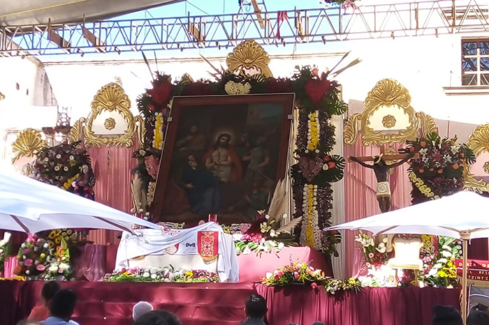 Angélica Ayala / La Voz de Michoacán Tzintzuntzan, Mich.- Una de las festividades católicas más importantes de la Región Lacustre, es la que se realiza en honor al Señor del Rescate, miles de fieles llegan al atrio de Los Olivos, en donde se instala el altar monumental y la imagen es sacada del interior del templo de Santa Ana, para así los feligreses puedan participar en la misa y durante todo el día puedan venerar al Señor del Rescate. Frente a la capilla abierta del atrio de Los Olivos, luce el altar lleno de flores en medio se encuentra el lienzo que plasma una de las escenas de la pasión de Cristo, ahí, los sacerdotes realizaron la ceremonia eucarística en punto de medio día, toda la feligresía se santigua y está atenta al rito. Previamente los peregrinos van llegando para santiguarse y quedarse un rato en oración frente el altar, otros más solo observan, algunos les llevan veladoras, otros más ramos de flores, hay quienes llegan hincados para agradecer algún milagro. En Pátzcuaro, es una tradición que las familias han heredado de una generación a otra, el salir caminando a temprana hora hacía Tzintzuntzan, así por la carretera y senderos llenos de tierra, se ve a las familias o grupos de amigos caminar, algunos descansan al lado de los árboles para mitigar el calor que se siente casi llegando el medio día, por la orilla de la carretera los peregrinos siguen sus pasos de quienes van por delante, la caminata puede durar de 4 a 6 horas; para cubrirse del sol llevan gorras o sombreros, sombrillas, todos llegan empolvados por los terrenos que van cruzando para que el camino sea más corto. Al llegar al Atrio de Los Olivos, se ven los dos escenarios instalados, donde las orquestas amenizan la fiesta, con sones, abajeños, valses y toda una gama de música que tal parece cada una se esmera por ser la mejor, estas orquestas son toda una tradición para la fiesta del Señor del Rescate, una es pagada por los organizadores de la fiesta, la otra la paga el Ayuntamiento, pero ambas son quienes dan ambiente a la festividad. Otras de las tradiciones son la venta de las limas y tamales de atole, que venden las mujeres de Santa Fe de la Laguna y de San Jerónimo Purenchécuaro, años atrás, el atrio de Los Olivos se llenaba de la venta de estas frutas y gastronomía de la región, no podía faltar el caldo de churipo o de pescado, los charales fritos o el mole, así como las tortillas hechas a mano y cocidas en comal de barro, con fuego de leña, sin embargo, ahora todas fueron instaladas con los demás comerciantes, en la avenida principal del poblado. Para visitar al Señor del Rescate, el calor no pesa, el estar sentado el pasto tampoco, la fe y devoción hacen que incluso el cansancio de la caminata no se sienta; al medio día, cuando inicia la misa, la costumbre es que los matrimonios que cumplen 25 años de casados, entregan las ofrendas al momento preciso de la celebración; también son quienes coordinan y trabajan para que la celebración en honor del patrono, de lo que fue el imperio purépecha, se realice de la mejor manera, con el apoyo de donaciones de la población de Tzintzuntzan, los migrantes también son quienes realizan aportaciones económicas para la festividad. Con un operativo coordinado entre corporaciones policiacas y de tránsito, así como de Protección Civil Municipal, se brindó el apoyo vial a quienes llegaban en sus automóviles, mientras que PCM estuvo al tanto si algunos de los feligreses presentaban alguna molestia, sobre todo a aquellos que llegaron caminando. La danza en honor al Señor del Rescate, volvió a presentarse este año, tras haber sido cancelada los años pasado por el tema de la COVID-19, las mujeres se visten con un vestido blanco y una capa roja, colocan una corona en su cabeza, simulando la vestimenta del Cristo, representan el bien y la penitencia, mientras que los “changos”, son el pecado y la maldad. Historia del Señor del Rescate De acuerdo a los datos históricos, a finales del siglo XVII en la región lacustre, azotó la peste de la viruela, que a diario cobraba la vida de cientos de vidas, el texto narra: “en unos de estos días de terror el guardián del convento franciscano afija su mirada suplicante en la efigie de Cristo en el pretorio de Pilato e intercede en favor de esta raza de Caltzontzin exclamando ´¡Padre mío Santísimo, rescátalos del poder de la muerte por esa tu sangre derramada! El señor escuchó la plegaria del religioso, porque desde ese momento cesó la peste. “Los purépechas agradecidos por tan gran favor, celebraron una fiesta en su honor asignándole, como es su costumbre, cargueros y mayordomos, desde entonces, año con año, ocho días antes del martes de carnaval, miles de fieles devotos de Michoacán y de otros Estados, vienen en peregrinaciones a pagar sus mandas con milagros y retablos, con cirios y ofrendas”.
