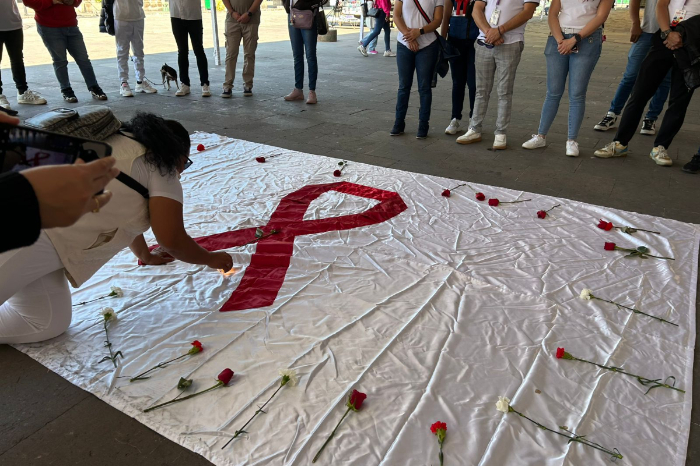 Monserrat Cervantes / La Voz de Michoacán Morelia, Michoacán. – “La estamos haciendo para crear conciencia en la gente en general. Es una pandemia, porque año con año va incrementando, es para generar conciencia en la sociedad, que tengan en cuenta que no es exclusiva de una sola población”, mencionó Pamela, trabajadora sexual durante la marcha en Morelia en conmemoración del Día Mundial de la Lucha contra el VIH/Sida. Este lunes 1 de diciembre se llevó a cabo una caminata pacífica donde los participantes llevaron flores y dejaron un mensaje altamente significativo dirigido a la sociedad moreliana, para generar concientización sobre la pandemia del VIH y promover la prevención de la salud sexual. La marcha fue dirigida por Pamela, una trabajadora sexual que explicó que esta enfermedad no solo afecta a la comunidad LGBT, sino que es una enfermedad que ataca a toda la sociedad sin discriminar edad, género u orientación sexual. “Muchas personas piensan o tienen la idea de que nada más la población LGBT adquirimos la infección, y que somos quienes estamos infectando a todo el mundo, y no”, explicó Pamela. Foto: Monserrat Cervantes La marcha culminó a un costado del atrio de la Catedral de Morelia, donde se pidió un minuto de silencio por todas las personas que perdieron la lucha contra esta enfermedad, entregando flores y colocando veladoras. En el atrio de la Catedral de Morelia se instalaron módulos de salud donde las personas pueden hacerse gratuitamente pruebas de VIH y sífilis, acudir a pláticas de salud dental y aplicarse vacunas contra COVID-19 e influenza. Estos módulos estarán disponibles hasta las 15:00 horas. El personal de los módulos de salud informo, que es recomendable realizarse una prueba protocolaria una vez al año y prevenir utilizando métodos de barrera, como lo es el condón masculino y femenino. Foto: Samuel Herrera Jr.