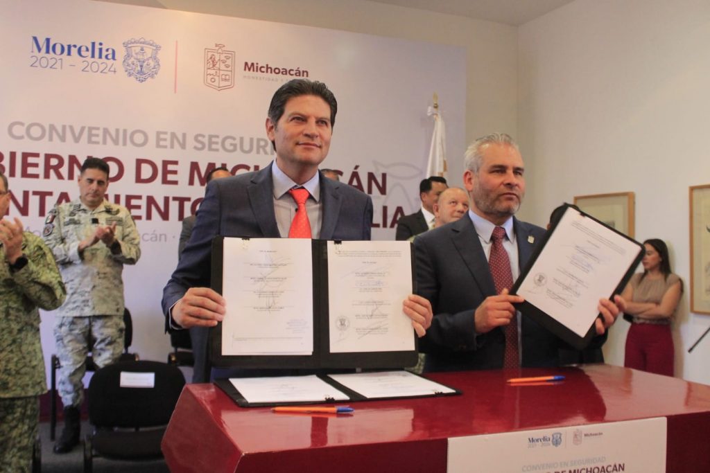 Arturo Molina / La Voz de Morelia, Michoacán. "Coordinación sin subordinación", celebraron autoridades municipales y estatales en el marco de la firma de convenio de seguridad en la ciudad de Morelia. Luego de meses de jaloneos, finalmente se materializó el convenio que buscará reducir la incidencia delictiva en la capital del estado. En el marco de la firma, el gobernador Alfredo Ramírez Bedolla, enfatizó que cada uno de los convenios de seguridad con los municipios se buscan instaurar sin imponer y sin afectar la división de los poderes del estado. Por lo anterior, la particularidad del fenómeno delictivo y las necesidades de Coordinación sobre salen en cada uno de las firmas con las más de 80 demarcaciones convenidas. Foto: Sam Herera Jr. En las acciones destacó prevalecer el principio de unidad, mejorar mecanismo de coordinación de seguridad pública para la construcción de la paz, dejar las filas y las fobias políticas, seguir con la construcción de las funciones de estado y municipios; fortalecer la cooperación con el gobierno federal; mantener el compromiso de una cooperación con estado; financiamiento a través del FORTAPAZ; prevención del delito y esquemas de particularización del fenómeno delictivo. "Siempre debemos velar por la capital, Morelia. He Sido siempre un defensor de la división de los poderes. Nuestra capital y la entidad durante muchos años han sufrido en esta materia el abandono, la falta de recursos, la corrupción que hacían una adversidad. Ahora esto está cambiando. Una coordinación total y transparente son posibles. Lo que vamos a iniciar es entender las particularidades del municipio", explicó. Solo en lo que refiere a Morelia, para el 2023 serán 120 millones de pesos los que se destinarán del recurso del FORTAPAZ. En voz de Alfonso Martínez Alcázar, presidente municipal de Morelia, reconoció las competencias y atribuciones de cada uno de los órdenes de gobierno en cuanto a la seguridad pública. En ese sentido celebró qué la contrapropuesta de convenio de seguridad que enviaron en los primeros días del mes de abril fue plasmada casi en su totalidad en el convenio que se firmó durante este martes. La apuesta creció. Hasta este 2023, el objetivo era concluir la administración municipal con un estado de fuerza de 1 mil elementos, en tanto que se espera que para el 2024 se alcancen 1 mil 200 elementos. "Mandamos un oficio rector para esta firma de convenio y quiero agradecer que casi en todos los términos se cumplió lo que plasmamos. En ese documento encontramos como trabajar en conjunto. En el gobierno del estado han tenido mucha apertura con nosotros. Una de las peticiones es el respeto a la autonomía municipal y a poder designar a los que comandan las fuerzas municipales. Esto quedó en el documento", manifestó.