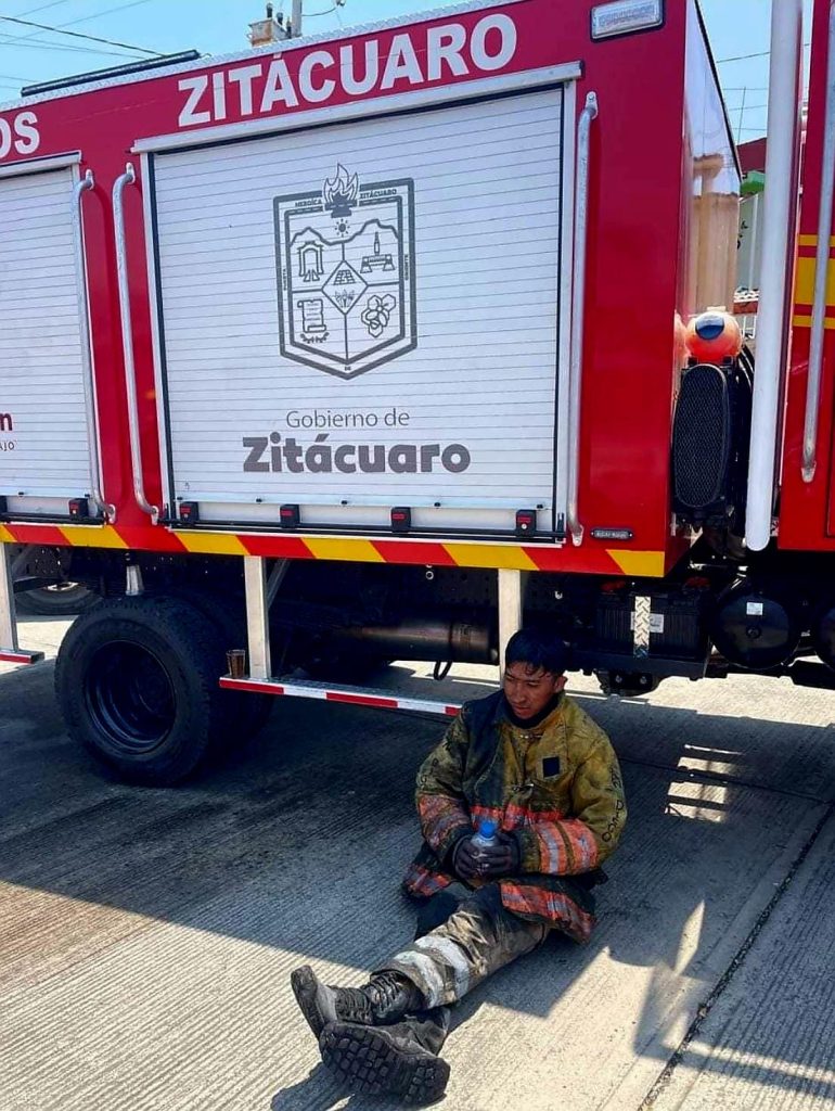 Redacción / La Voz de Michoacán Zitácuaro, Michoacán. La fotografía de un Bombero de Zitácuaro, cansado y sediento, tras combatir por varias horas un incendio de pastizal, para evitar que afectara domicilios, en la colonia Infonavit. El joven bombero luego de enfrentar el fuego se tomó unos minutos para descansar, recargado junto a su camión de ataque rápido y rehidratarse, para continuar su labor, demostrando valentía y coraje. Y es que muchas de las veces en esta actividad se arriesga la vida, a pesar del cansancio, hay que sacar fuerzas de flaqueza, para seguir a delante aun y cuando el cuerpo este mermado por el esfuerzo, todo por proteger a la ciudadanía. Quizá por lo anterior, la imagen al ser posteada en redes sociales, se llenó de mensajes en los que se valora el esfuerzo del elemento, “lo admiramos sin conocer su identidad”, “reconocemos la vocación de servicio y compromiso, por su tiempo, dedicación y sacrificio”, se lee en algunos de ellos. Como dice el lema de los Bomberos de Zitácuaro. "No te conozco, pero daría la vida por ti", y queda demostrado una vez más. En otros de los mensajes de apoyo, se hace un exhorto a las autoridades de los tres niveles de gobierno para alcanzar la meta de profesionalizar a los bomberos, dotarlos del equipo necesario y sobretodo que cuenten con un salario digno que les permita cubrir las necesidades en sus hogares.