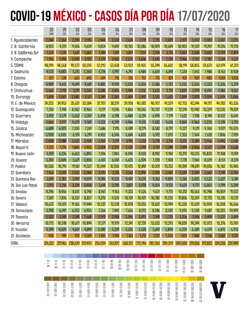 Casos acumulados Confirmados Recuperados Muertes Lázaro Cárdenas2,4482,072135Morelia1,05277975Uruapan74958258Huetamo44938930Apatzingán42235836Múgica33627949 La Voz de Michoacán te presenta todas las noches el último reporte de la Secretaría de Salud de casos de COVID-19 Osiris Olachea / La Voz de Michoacán Morelia, Michoacán. Este viernes Michoacán registró 133 casos nuevos de COVID-19, la mayoría de ellos en Morelia, con lo que el estado alcanzó 7 mil 939 casos acumulados de la enfermedad, de acuerdo con el informe de la situación de la epidemia que emitieron este día las autoridades sanitarias. Este día 47 de la nueva normalidad o convivencia se reportaron 15 nuevos decesos de pacientes positivos a coronavirus, y con ellos, Michoacán llegó a 621 defunciones por complicaciones del padecimiento. Hasta hoy se han recuperado 6 mil 240 personas que tenían COVID-19, mientras que mil 078 aún padecen la enfermedad, por lo que deben mantener las medidas de aislamiento o prevención, en caso de que no estén hospitalizados, para evitar que continúe la cadena de contagios. Fuente: Centro Estatal de Operaciones COVID-19 de la SSM. Diseño: Enrique Santiago, La Voz de Michoacán. De acuerdo con la Secretaría de Salud en Michoacán (SSM), los casos activos son las personas que manifestaron inicio de síntomas en los últimos 21 días. Además, en el estado hay 2 mil 304 casos sospechosos, es decir que aún no reciben diagnóstico, por lo que de resultar positivos al virus SARS-CoV-2, causante de la enfermedad de COVID-19, podrían aumentar la lista de casos confirmados y activos. Por segundo día consecutivo, Morelia es el municipio que registró más casos nuevos. Este viernes sumó 26 contagios más, y con ellos llegó a mil 052 casos acumulados, de los cuales 779 se han recuperado, 198 todavía presentan la enfermedad y 75 murieron. Además, en la capital michoacana hay 484 casos sospechosos que aún no se determina si están infectados o no. Maravatío reportó hoy 14 casos más y con ellos alcanzó los 111 casos confirmados, y de ellos, 78 superaron al COVID-19, 32 todavía presentan síntomas, por lo que son los casos activos, y 1 persona falleció; en este municipio hay además 67 habitantes que podrían tener la enfermedad. Zitácuaro, uno de los 14 municipios con Bandera Amarilla por el riesgo alto de contagios, tiene hoy 10 casos más, 161 en total; de estos, 100 ya vencieron a la enfermedad, 43 todavía la padecen y 18 murieron. Pátzcuaro es el municipio que registró más muertes este día, con 4 casos más, 14 en total. El Pueblo Mágico sumó 9 contagios y tiene 121 acumulados, de los cuales 56 se recuperaron y 51 todavía presentan la enfermedad de COVID-19, cuyos síntomas principales son tos, dolor de cabeza y fiebre. En Morelia y Huetamo se reportaron 3 muertes más de pacientes positivos a coronavirus, pero mientras la capital del estado tiene 75 decesos en total, Huetamo llegó a 30. Otros cinco municipios acumularon 1 nuevo fallecimiento: Lázaro Cárdenas (135 en total), La Piedad (12 totales), Sahuayo (2 en total), Los Reyes (3 en total) y Erongarícuaro (3 totales). La mayoría de los decesos en Michoacán son en el grupo de 60 a 69 años de edad, en el cual han fallecido 109 hombres y 64 mujeres, seguido del grupo de entre 50 y 59 años, con 140 defunciones y el de 70 a 79 años, con 138 casos. Fuente: Dirección General de Epidemiología de la Ssa. Diseño: Enrique Santiago, La Voz de Michoacán.