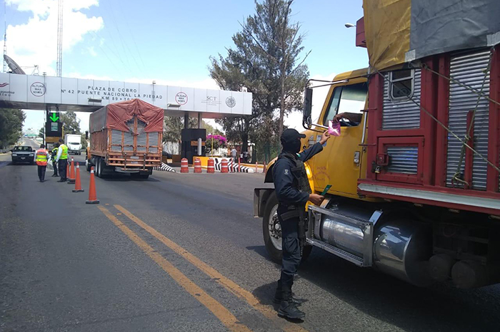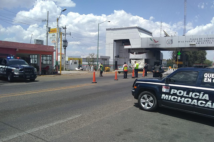 A fin de proteger la salud de los habitantes, elementos de la Policía Michoacán mantienen presencia a la altura de la caseta de cobro Puente Nacional y en la salida al municipio de Yurécuaro.