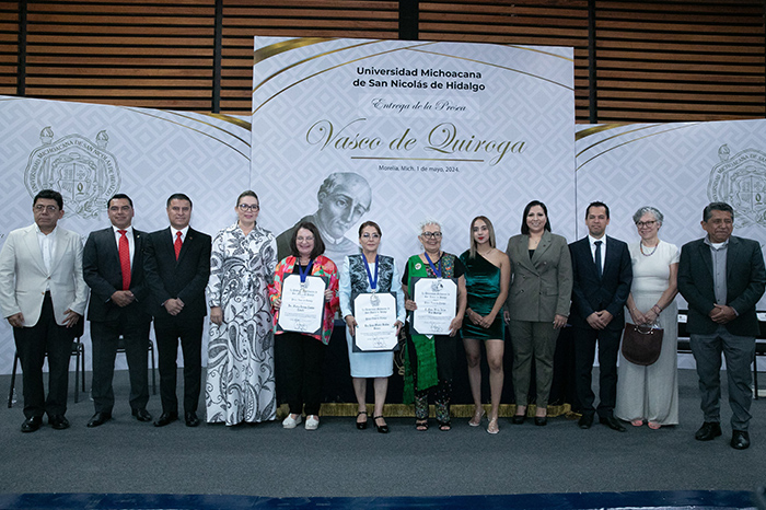 Redacción / La Voz de Michoacán Morelia, Michoacán. “En unidad, todos los sectores tenemos que transitar para cumplir objetivos, porque retos son muchos los que tenemos y es mucho más sencillo apostarle a las coincidencias que a las divergencias, que lo único que hacen es generar confrontarnos, la Universidad Michoacana es nuestra y tiene grandes retos enfrente”, afirmó la rectora nicolaita, Yarabí Ávila González al hacer entrega de la Presea “Vasco de Quiroga” 2024, a las trabajadoras Rosa María Ávalos González, María Teresa Cortés Zavala y Alma Alicia Arias Díaz Barriga. Frente a las y los consejeros universitarios, directores y directoras de facultades e institutos, así como del funcionariado y familiares de las galardonadas, la rectora señaló que hoy se está reconociendo a tres personas que representan a miles de trabajadoras y trabajadores que hacen grande a la Universidad Michoacana de San Nicolás de Hidalgo. “Hoy sus nombres quedan grabados con letras de oro para la posteridad porque son el ejemplo que buscamos que inspiren a las nuevas generaciones por su trabajo, que día a día permite a esta institución cumplir a cabalidad con sus funciones sustantivas, queremos que ese amor que profesan a nuestra Universidad permee en cada uno de los sectores que representan”. La rectora felicitó a las recipiendarias de la Presea “Vasco de Quiroga”, que recordó se entrega desde el año 2017, tras referir que al escuchar sus trayectorias y mensajes se confirma que “es con ustedes con quien debemos caminar de la mano para llevar al camino correcto a nuestra Máxima Casa de Estudios”. De igual forma, destacó la presencia de familiares de las galardonadas, quienes dijo, reflejan ese amor y orgullo que sienten por lo que han realizado en cada uno de los diferentes ámbitos que se han desempeñado, al compartir que representan mucho para la UMSNH, a la que enaltecen. Durante el evento, se dio lectura de la amplia trayectoria de cada una de las ganadoras de este reconocimiento, por parte de integrantes de la Comisión Especial para el Otorgamiento de la Presea “Vasco de Quiroga”. En este marco, la doctora María Teresa Cortés Zavala, quien obtuvo el galardón por su Trayectoria destacada en Investigación Científica o en Desarrollo Tecnológico, agradeció este galardón, e invitó a las y los universitarios a iniciar un diálogo abierto y permanente sobre el presente en los espacios de la UMSNH. “Los convoco desde esta tribuna a pensar y conversar sobre los grandes temas nacionales e internacionales que nos aquejan, los universitarios tenemos una gran responsabilidad en imaginar un futuro mejor, estamos obligados no sólo a debatir los ideales y utopías de nuestro tiempo sino como agentes de cambio, a construir nuevos escenarios para dar respuestas oportunas a los desafíos que enfrentamos como sociedad y como humanidad”, enfatizó. Por su parte, la licenciada Rosa María Ávalos González, quien obtuvo el galardón por su Trayectoria destacada como Trabajador/a Administrativo y Manual, manifestó su emoción por ser recipiendaria de la Presea, tras señalar que laborar en la UMSNH es hacerlo en favor de las mejores causas. “Nuestra Universidad es la casa de todas y de todos, la diversidad alienta y es claro el signo de los tiempos, el enfoque democrático que nos debe caracterizar, nuestra Máxima Casa de Estudios es nuestro patrimonio, es una causa y motivo para mantener una actitud de lucha a través de la educación”. En su turno, Alma Alicia Arias Díaz Barriga, quien recibió la Presea por su Trayectoria destacada en la Promoción, Gestión y Difusión de la Cultura y las Artes, manifestó su satisfacción por este galardón, y reconoció a su familia por el respaldo para lograr sus metas. “Quiero agradecer a esta institución el apoyo que ha brindado para seguir llevando a cabo este arte, y seguir logrando más triunfos, los invito a que sigamos preservando e innovando este arte de pintar con plumas de ave, por siempre nicolaita”. Durante el evento se contó con la presencia del secretario general, Javier Cervantes Rodríguez, así como de la regente del Colegio Primitivo y Nacional de San Nicolás de Hidalgo, Janeth Morales Cortés; del director de la Facultad de Ingeniería Eléctrica, Roberto Tapia Sánchez, del consejero profesor del Instituto de Investigaciones Históricas, Eduardo Miranda Arrieta y de la consejera alumna de la Facultad de Contaduría y Ciencias Administrativas, Karla Lizette Trigueros Ruiz, quienes son integrantes de la Comisión Especial para el Otorgamiento de la Presea “Vasco de Quiroga”.
