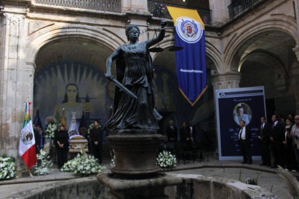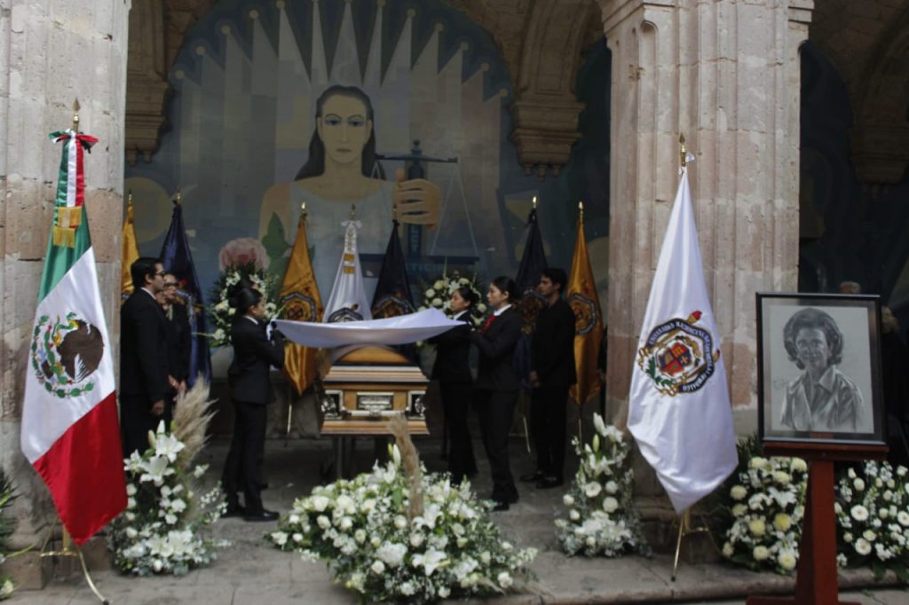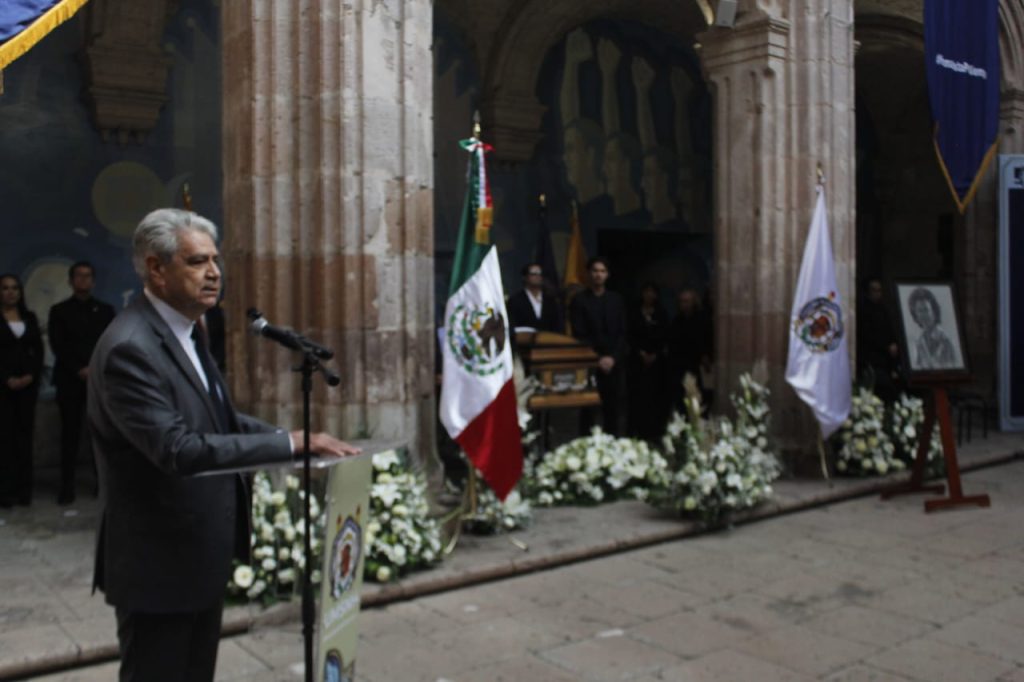 Ashley Rodríguez / La Voz de Michoacán Morelia, Michoacán. - La Facultad de Derecho y Ciencias Sociales de la Universidad Michoacana de San Nicolás de Hidalgo (UMSNH) se vistió de luto este lunes para rendir un homenaje póstumo a la Licenciada María Guadalupe Morales Ledesma, destacada jurista, funcionaria pública y profesora universitaria que falleció el día domingo. Foto: Sam Herrera Jr. El acto reunió a un amplio sector de la comunidad universitaria: estudiantes, exalumnos, docentes, autoridades y funcionarios públicos, quienes se dieron cita para reconocer y honrar la vida, trayectoria y legado de una mujer que dejó una huella profunda en el ámbito del Derecho. La ceremonia estuvo encabezada por la rectora de la UMSNH, Yarabí Ávila González, quien, junto a su equipo directivo, profesores, exalumnos y familiares participó en la guardia de honor y en la entrega simbólica de la Bandera Nicolaita que cubrió el féretro de la licenciada. Un legado de integridad y compromiso El homenaje comenzó con la llegada del féretro al patio central de la Facultad, donde fue recibido entre una atmósfera de aplausos por la comunidad estudiantil. Foto: Sam Herrera Jr. El Licenciado Jorge Orozco Flores fue el encargado de pronunciar el mensaje central del homenaje, quien expresó la trascendencia de la vida y obra de María Guadalupe Morales Ledesma. En su discurso compartió que existen muchas formas de manifestar el dolor y el respeto: el silencio solemne, las lágrimas y también los aplausos, que en más de una ocasión se escucharon durante la ceremonia. En su intervención detalló la amplia y significativa trayectoria de la Licenciada Morales Ledesma, quien dijo, no solo fue una destacada jurista y profesora, sino también una funcionaria pública ejemplar. Jorge Orozco hizo énfasis en que la Licenciada fue una pionera en la apertura de espacios para las mujeres dentro de la administración pública y el Derecho en Michoacán. Además, destacó que su integridad fue absoluta. Docencia y legado Foto: Sam Herrera Jr. Orozco Flores recordó que ella tenía un "don natural" para conectar con cada alumno, haciendo que cada uno se sintiera único y especial en el aula. A su vez, compartió que esa capacidad didáctica y humana permitió que generaciones enteras de abogadas y abogados no solo recibieran formación jurídica, sino también valores éticos y humanos, convirtiéndola en un referente para alumnos y colegas. El Licenciado cerró su mensaje destacando que la partida de la Licenciada Morales Ledesma representa el fin de una era en la formación jurídica en Michoacán, pues ella encarnó el prototipo de abogada formada bajo una tradición de más de 200 años. Guardia de honor y protocolo solemne Posteriormente se organizaron las guardias de honor, mientras la Banda de Guerra tocaba con solemnidad: Foto: Sam Herrera Jr. 1. En primer lugar, la rectora Yarabí Ávila y su equipo de trabajo se colocaron en guardia ante el féretro, mostrando la representación institucional máxima de la UMSNH en este acto de despedida. 2. En segundo término, familiares. 3. Posteriormente, se convocó a las miembras del Colegio de Abogadas del Estado de Michoacán, del cual la Lic. Lupita Morales fue fundadora. Finalmente, distintos grupos se dieron paso para formar guardias sucesivas: docentes, exalumnos, funcionarios públicos, así como estudiantes y amigos. Al culminar este acto, la rectora Yarabí Ávila hizo entrega oficial de la Bandera Nicolaita a la familia de la licenciada Morales Ledesma. El acto culminó con la salida del féretro de las instalaciones de la Facultad de Derecho y con aplausos resonando en el recinto.