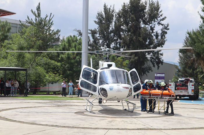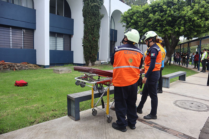 En este tenor, Ciudad Universitaria fue uno de los más de 2 mil inmuebles que se sumaron a este simulacro, en el que la hipótesis de esta institución fue una persona herida por picaduras de abeja que se encontraba en una antena del edificio N, a la que el personal de emergencias atendió y trasladó en helicóptero a un nosocomio de la capital.
