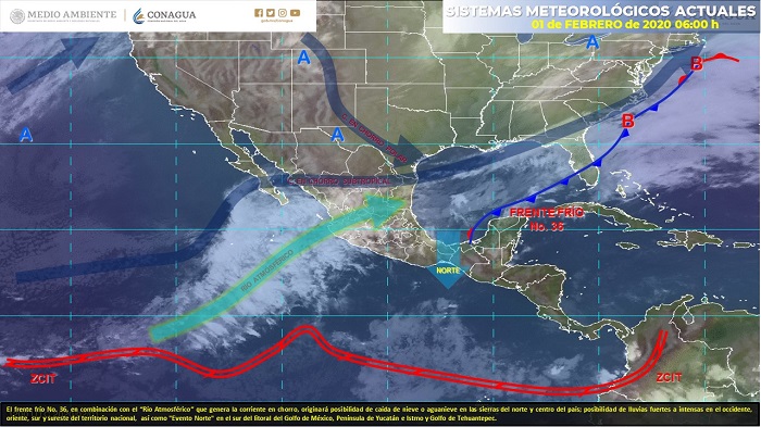 Redacción / La Voz de Michoacán Morelia, Michaocán. Este día, el frente frío No. 36, en combinación con el “Río Atmosférico” que genera la corriente en chorro, originará posibilidad de lluvias fuertes a intensas en el occidente, oriente, sur y sureste del territorio nacional. Lluvias aisladas y cielo nublado en Guanajuato, Colima, Michoacán, Hidalgo, Querétaro, Estado de México, Ciudad de México y Guerrero. El la sierra de Michoacán habrá Temperaturas mínimas de -5°C a 0°C y heladas, mientras que en Tierra Caliente se espera unamáxima de 35 y 40 grados. Para Morelia se espera un sábado con una máxima de 21 grados y una mínima de 8. De acuerdo con los pronósticos la mayor parte del día esté nublado pero sin que llegue a llover. En Uruapan la máxima será de 23 y la mínima de 12. Lázaro Cárdenas una máxima de 29 y una mínima de 23. En Pátzcuaro se espera un ambiente de fresco a frío con una máxima de 19 y una mínima de 7.
