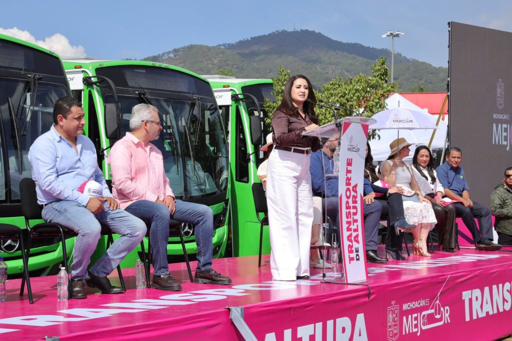 Morelia, Michoacán.- El gobernador Alfredo Ramírez Bedolla entregó en Uruapan las primeras 80 unidades nuevas a colectivos del transporte público urbano, con lo que se convierte en el primer municipio de Michoacán en implementar el Sistema Integrado de Transporte como parte del programa de modernización. El mandatario reconoció el trabajo coordinado con las agrupaciones Tata Lázaro y Colectivos Uruapan para concretar una inversión estatal inicial de 85 millones de pesos, sin embargo, adelantó que antes de que concluya su gobierno en 2027 entregará en total 240 unidades con un presupuesto de 250 millones. Ramírez Bedolla destacó que, con el Sistema Integrado de Transporte, la población de la ciudad más productiva del estado y considerada como la capital del aguacate contará también con el teleférico, que se encuentra en la recta final de su construcción. Ambos funcionarán con un sistema de prepago por tarjeta, como ya ocurre en las grandes ciudades. “Cada unidad tiene tecnología de punta con cámaras de seguridad interiores y exteriores conectadas al C5i, y control de velocidad”, explicó Ramírez Bedolla, quien pidió a las mujeres y hombres conductores del transporte brindar un trato digno a la población usuaria, mismos que recibirán capacitaciones mediante un innovador simulador. Por su parte, la secretaria de Desarrollo Urbano y Movilidad, Gladyz Butanda Macías, aportó que con la renovación de estas unidades de transporte se pone fin a un rezago de 40 años que tenía el municipio en materia de movilidad. “Uruapan recupera su grandeza, pese a las adversidades”, manifestó. En tanto, la alcaldesa Grecia Quiroz García, celebró la modernización del transporte público urbano que impulsa el Gobierno estatal, ya que con ello se mejorará la calidad de vida de la población uruapense al contar con mejores condiciones para trasladarse en su vida diaria. Acompañaron al gobernador el secretario y subsecretario de Gobierno, Raúl Zepeda y Juan Manzo, respectivamente; la directora del Instituto del Transporte, María Elena Huerta; la diputada presidenta de la Mesa Directiva del Congreso local, Giulianna Bugarini; entre otras autoridades estatales y municipales, legisladores federales y locales, líderes transportistas, conductores y población beneficiada.