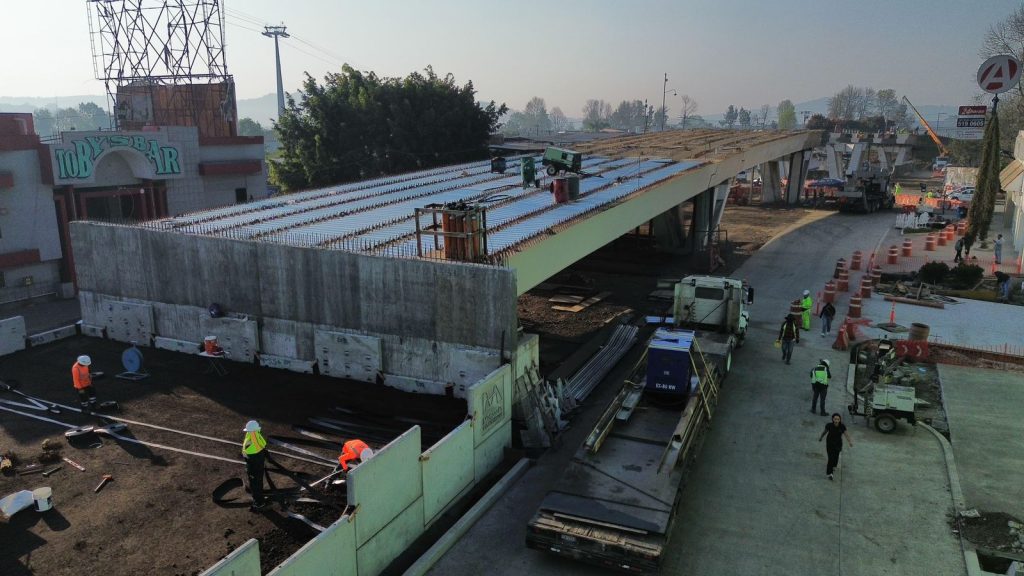 Zarazúa Sánchez detalló que la obra cuenta con 150 trabajadores en sitio, distribuidos en tres turnos. Las labores actuales incluyen la colocación de ductería de media tensión, la nivelación y compactación de rellenos a nivel de subrasante, y la instalación de muros mecánicamente estabilizados en armados de losa. En cuanto a la estructura principal, se lleva a cabo el montaje nocturno de 24 de las 36 trabes metálicas totales, una medida implementada para disminuir la afectación vial en la zona.