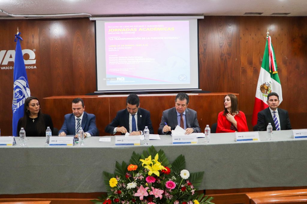 Redacción / La Voz de Michoacán Morelia, Michoacán. Autoridades universitarias de la UVAQ y del Colegio de Notarios de Michoacán firmaron un convenio de colaboración, coordinación y participación de vinculación académica. A través de este acuerdo ambas instituciones coordinarán acciones para promover el desarrollo, la generación de proyectos de educación y capacitación continua, así como otros rubros de vinculación interinstitucional. El Mtro. José Antonio Herrera, Rector de la UVAQ, señaló que la colaboración tiene la finalidad de unir esfuerzos para la construcción de una sociedad de paz e invitó a los jóvenes a aprovechar la oportunidad de colaborar con el Colegio de Notarios, a través de los programas de liberación de servicio social y prácticas profesionales, así como diversas actividades de vinculación, mientras que a los miembros del Colegio extendió la invitación para integrarse a los programas académicos de la UVAQ que contribuyan en su formación continua. Por su parte, Octavio Peña, Presidente del Colegio de Notarios de Michoacán, resaltó que las funciones del notario tienen un papel importante en la sociedad por lo que es importante que los estudiantes conozcan y se vinculen con la labor que desempeñan. La firma de convenio se realizó en el marco de las Jornadas Académicas de la Licenciatura en Derecho de la UVAQ, autoridades de ambas instituciones, alumnos, notarios y docentes. #ConveniodeColaboración #ColegiodeNotariosdeMichoacán #UVAQ #Derrecho