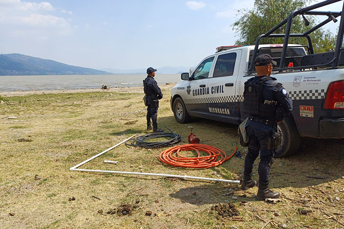 Redacción / La Voz de Michoacán Morelia, Michoacán.- Como resultado del operativo implementado contra el huachicoleo de agua se han decomisado 48 bombas utilizadas para extraer de manera ilegal el recurso de los lagos de Pátzcuaro y Zirahuén. El secretario de Seguridad Pública, José Alfredo Ortega Reyes, señaló que de abril a mayo dichos decomisos se han efectuado en seis cateos en acompañamiento a la Fiscalía General del Estado (FGE) y en coordinación con la Comisión Nacional del Agua (Conagua), así como con las policías municipales, donde fueron asegurados cinco predios e inmuebles y se han inhabilitado tres represas. Durante el despliegue operativo para evitar la sustracción del agua, se han detenido a tres personas y asegurado 16 unidades vehiculares; además de 4 mil 158 metros de mangueras que conectaban para regar huertas de aguacate, arándanos o abastecer pozos de agua. Por último, destacó que se mantiene el despliegue operativo de 86 agentes de la Guardia Civil, quienes a bordo de 12 patrullas, en coordinación con las fiscalías estatal y federal, así como con la Conagua, la Capitanía de Puerto y los municipios, se encuentran en Zirahuén, Janitzio, Oponguio, Puácuaro, Chupícuaro, San Jerónimo Purenchécuaro y el muelle de Urandén.