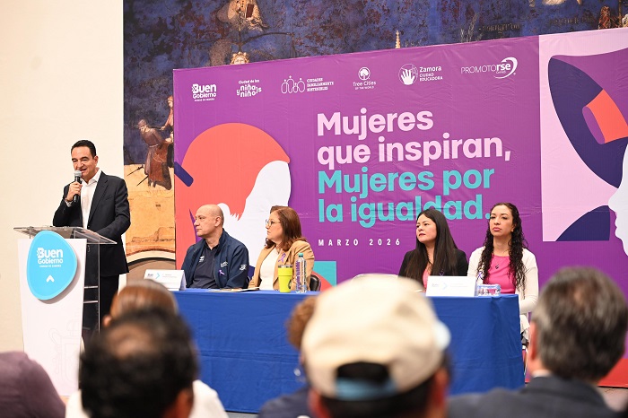 Zamora, Michoacán; 6 de marzo de 2026.- En el marco del Día Internacional de la Mujer, el presidente municipal, Carlos Soto Delgado, encabezó el evento “Mujeres que Inspiran: Mujeres por la Igualdad”, realizado en el segundo patio de la Presidencia Municipal. Durante la jornada se llevaron a cabo pláticas y foros de expresión que permitieron reflexionar sobre la importancia del papel de las mujeres en la sociedad y reconocer a aquellas zamoranas que con su trabajo diario impulsan el desarrollo del municipio.