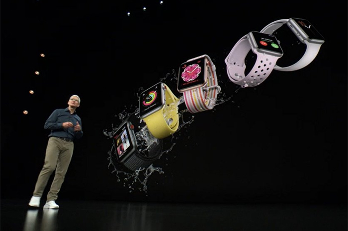 "La caja tiene menos volumen que el series 3", con una nueva esfera que es capaz de mostrar mucho más información. Incluye una nueva pantalla, de borde a borde, tal y como el iPhone X. Con una pantalla 30% más grande.