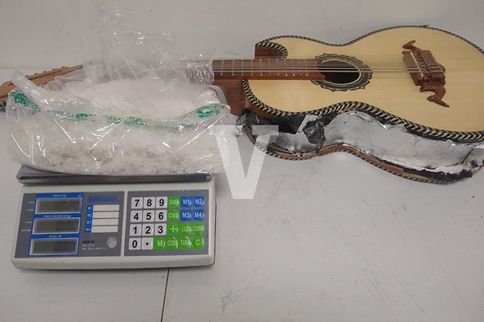 Redacción / La Voz de Michoacán Morelia, Michoacán. Cinco millones de pesos en droga sintética conocida como “cristal” fueron asegurados por la Guardia Nacional (GN) dentro de una guitarra que iba ser enviada de Morelia a Minneapolis, Estados Unidos a través de una empresa de paquetería. Con relación al tema se pudo conocer que los guardias nacionales acudieron a una compañía de paquetería ante una denuncia ciudadana de que de un estuche con una guitarra emanaba un fuerte olor a químicos, instante en que los uniformados revisaron el paquete y ocultos en el instrumento musical hallaron 20 kilos de metanfetaminas. El “cristal” estaba listo para su venta y distribución en el mercado de las drogas ilegales, en donde hubiera alcanzado los cinco millones de pesos de ganancia para las células delincuenciales, a decir de fuentes gubernamentales. Con relación al tema, este día la GN divulgó lo siguiente en un boletín de prensa: “… los guardias nacionales ingresaron a dicha empresa para efectuar una inspección de seguridad y ubicaron un estuche con una guitarra de madera deteriorada que desprendía un fuerte olor a químico. “Al inspeccionar la guitarra localizaron tres envoltorios de plástico transparente que contenían una sustancia granulada y cristalina con las características de la metanfetamina, con un peso aproximado de un kilo 20 gramos. “Por lo anterior, el estuche con la guitarra y la probable metanfetamina fueron asegurados y trasladados a la Fiscalía General de la República con sede en Morelia, Michoacán, para continuar con las indagatorias correspondientes”, puntualizó la corporación.