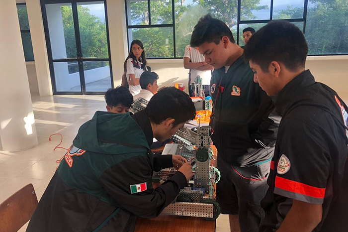 Redacción / La Voz de Michoacán Cancún, Quintana Roo. Estudiantes del Colegio de Estudios Científicos y Tecnológicos del Estado de Michoacán (CECyTEM), obtuvieron segundo y octavo lugar en el Torneo Internacional Vex Cancún 2018, tras competir contra 50 equipos de diferentes entidades del país y de Estados Unidos. Los alumnos del plantel Capula en alianza con la Escuela Monarca de Jalisco, obtuvieron medalla de plata, al situarse en el segundo lugar en el Torneo Internacional, tras enfrentarse con estudiantes de Dublin Robotics –California en alianza con el CBTIS 191 del estado de Veracruz, mientras que jóvenes de San Lucas, se posicionaron en el octavo sitio de la tabla general. Los alumnos Christian Giovanny Rico Hernández, Jorge Domínguez Padilla, Sergio Aarón Linares Muñoz, Cristofer Antonio Medina Arroyo y Emmanuel García Estrada, conformaron el equipo del Plantel Capula, asesorados por el maestro Gustavo Gerardo Reyes Ramírez, quienes obtuvieron medalla de plata en este certamen tecnológico y el primer lugar en el Segundo Torneo de Robótica Estatal CECyTEM 2018, el cual les dio el pase para el Torneo Internacional. Emmanuel García Estrada, estudiante del Plantel Capula, comentó que el competir en estos torneos es una gran experiencia, así como el viajar a otros estados y poner en práctica los conocimientos adquiridos como el diseño y la programación. “Valió la pena el trabajar todo un mes, todos los días por la tarde, para afinar nuestro producto, y nuestro punto clave para ganar fue la estrategia, además me siento orgulloso de haber representado a mi estado Michoacán”, refirió el alumno.