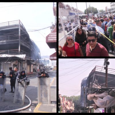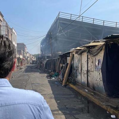Omar Cuiriz, Víctor Ramírez / La Voz de Michoacán Morelia, Michoacán.- Entre hoy y mañana el estacionamiento de tres pisos del Mercado Independencia será demolido luego de sufrir daños en la estructura por un incendio registrado durante la noche del viernes y la madrugada de este sábado. Imágenes dejan ver que la estructura está semicolapsada a la espera de que por sí sola pueda derrumbarse por completo. En una visita del alcalde de Morelia, Alfonso Matínez, a las instalaciones del antiguo e importante mercado, informó que hasta el momento se contaron 153 locales afectados, de los cuales al menos 10 quedaron totalmente consumidos por las llamas. El mercado permanece cerrado y acordonado en su totalidad, sin embargo, el alcalde dijo que a la brevedad se buscará reabrir las partes que no representen riesgo. Foto: Víctor Ramírez Sobre los comerciantes que quedaron sin puesto, dijo que serán reubicados por el momento y se les brindará apoyo económico, además de que el municipio asumiría el coste correspondiente de las afecciones. Alfonso Martínez descartó que el incendio que duró varias horas, se trate de un atentado y más bien lo consideran hasta ahora como un accidente. Por el momento Protección Civil evalúa los daños, por lo que se espera un informe más tarde. Foto: Víctor Ramírez Foto: Víctor Ramírez Foto: Víctor Ramírez