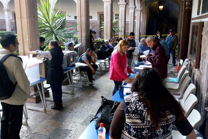 Ana Rosa García / La Voz de Michoacán Morelia, Michoacán. Han comenzado las votaciones en la casilla instalada en el Colegio Primitivo y Nacional de San Nicolás de Hidalgo, que pertenece a la Sección 1023. En esta casilla serán elegidos los candidatos a diputado federal del distrito 10 y local del distrito 17, así como senadores, presidente municipal y presidente de la república. Es importante señalar que la casilla comenzó a instalarse cerca las 7:30am, y arrancó sus funciones hasta pasadas las 9 de la mañana, generando inconformidad por parte de los ciudadanos, quiénes hacen fila desde temprana hora, la cual ha llega hasta las afueras de la Preparatoria 1.