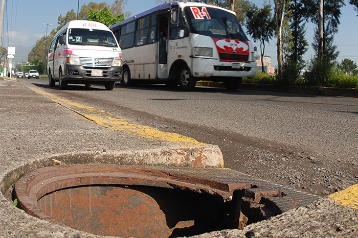 Arturo Molina / La Voz de Michoacán Morelia, Michoacán. Una gran cantidad de baches, remaches, parches y otras reparaciones, han generado condiciones para un trayecto accidentado en los 5 pasos a desnivel que componen el Libramiento Norte de Morelia. A poco más de 4 años de las obras de modernización, queda la evidencia de que los materiales de construcción que se emplearon no soportaron un lustro de uso. El tiempo, el aforo de vehículos y la mala calidad de los materiales de la carpeta asfáltica, generaron una gran cantidad de baches que ante la carga vehicular son reparados rápidamente por las brigadas de bacheo. En el trayecto por este tramo del circuito interior de Morelia es común que los vehículos sufran un brincoteo. La obra programada dentro del contexto del Plan Michoacán, y la cual fue señalada por presuntos actos de corrupción, así como la adjudicación directa de millonarios contratos a empresas foráneas, se encuentra en un estado deficiente para los miles de automovilistas que por ahí transitan diariamente. A través de un recorrido, La Voz de Michoacán comprobó que los carriles centrales de los 5 pasos a desnivel presentan una gran cantidad de “parches” que han terminado por dejar una mala imagen y una conducción accidentada. No sólo es en los carriles centrales, las laterales de la obra son auténticas trampas mortales tanto para el transporte público como para los ciudadanos que por ahí transitan. En muchos de los casos los vehículos deben frenar abruptamente para no ir a caer en las “zanjas” que llevan meses siendo denunciadas. En la zona es común ver brigadas de bacheo poniendo remaches a los agujeros que se abren en los carriles centrales, como evidente prueba de que los materiales de construcción empleados no sobrevivieron más allá de 5 años de uso. La estética de la obra en los costados revela incluso la falta de mantenimiento. En muchos de los casos, los decorados ornamentales que hacen referencia a la cantera rosa y otras obras arquitectónicas de Morelia han sido dañados por el paso del tiempo, los grafitis, los actos de vandalismo y el mismo uso. Sólo en el paso a desnivel inferior que conecta con la salida a Salamanca, durante meses los sistemas de alcantarillado tuvieron que ser reparados en múltiples ocasiones recientemente, lo cual generó incluso problemas en el tránsito vehicular. A unos cuantos metros de distancia de los desagües defectuosos también se tuvieron que realizar reparaciones el año pasado en cuanto a una de las salidas a las laterales.