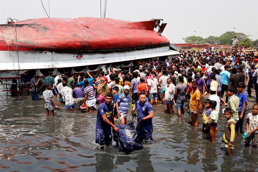EFE / La Voz de Michoacán Dacca.- Un total de 27 personas han fallecido al hundirse ayer, domingo, un barco tras chocar con otro en un río cerca de la capital de Bangladesh, Dacca, de acuerdo con el balance oficial comunicado hoy al darse por concluidas las labores de rescate. "Hoy hemos extraído 21 cadáveres del barco y otro salió a flote. Anoche recuperamos cinco cadáveres. Hemos revisado el barco a fondo y no hay más cadáveres dentro", dijo el director de la Autoridad de Transporte en Aguas Continentales, Rafiqul Islam. Foto: EFE. El accidente de la embarcación, en la que viajaban unos 47 pasajeros, se produjo a media tarde del domingo en el río Shitalakkhya, a la altura del distrito de Narayanganj, y hoy se logró arrastrarla n hasta la orilla, dijo Islam. "No hay más denuncias de desaparecidos. Sin embargo, usamos un helicóptero para rastrear el río y ver si había más cuerpos", explicó por su parte el jefe de la administración local, Mostain Billah, quien añadió que en el momento del accidente otros 20 pasajeros lograron llegar a nado hasta la orilla y ponerse a salvo. "Entregamos los 27 cuerpos a las familias", concluyó Billah, que había adelantado que, según la investigación inicial, el barco fue golpeado por una embarcación de menor tamaño antes de hundirse. Foto: EFE. Uno de los supervivientes, citado por el diario local Prothom Alo, aseguró que el barco estaba abarrotado, ya que muchas personas se dirigían a sus aldeas tras la decisión del Gobierno bangladesí de imponer un confinamiento nacional de una semana, a partir de hoy para contener el rápido avance del coronavirus. Este tipo de accidentes, como hundimientos y choques entre barcos, son frecuentes en el país, donde cientos de vías fluviales, incluidos los ríos del delta del Ganges como el Brahmaputra, Padma y Meghna, se utilizan comúnmente para el transporte. Foto: EFE. En la mayoría de los casos, estos incidentes pueden atribuirse a la sobrecarga y al mal estado de las embarcaciones. Sin embargo, se han visto considerablemente reducidos a lo largo de los años debido a las mejoras en la previsión meteorológica y a la implementación de nuevas medidas de seguridad.