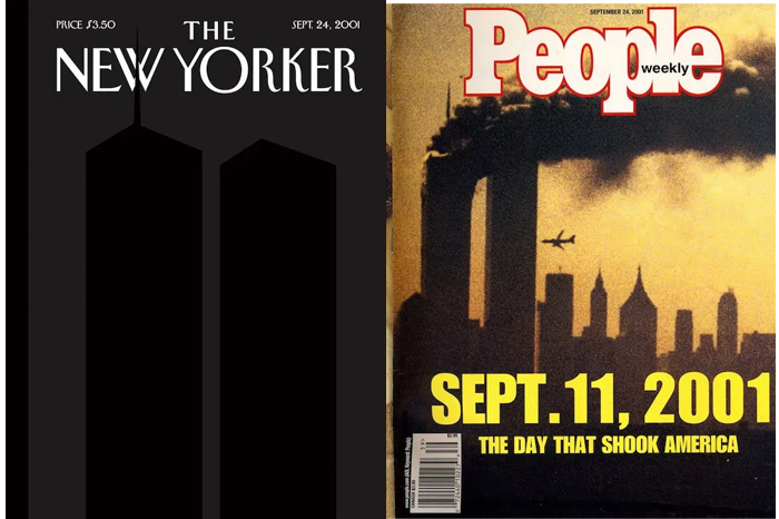 Al día siguiente —y las semanas que vendrían después— las portadas de revistas enmarcaron el momento, mandaban un mensaje o mostraban su luto. Editores y reporteros intentaban capturar uno de los momentos más complejos en la historia; como escribió Ted Spiker: “Las revistas capturaron lo que el país sentía, desde el terror y la tristeza hasta la esperanza y el orgullo. Al final, hicieron lo que mejor hace una revista, comunicar emociones en una sola página”.