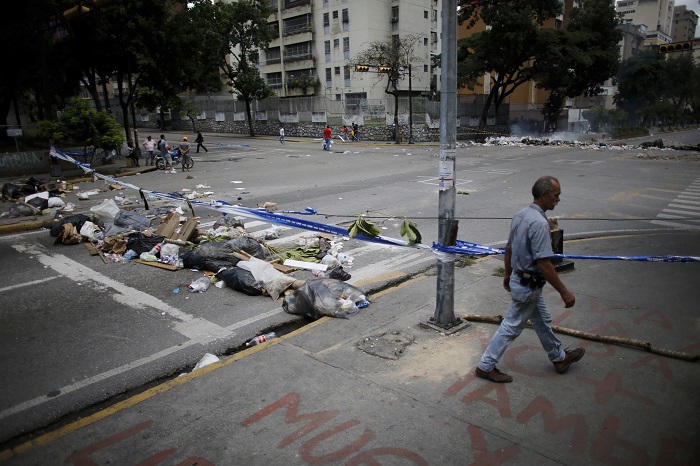 Mundo | 26 Jul, 2017, 14:13 Activa oposición venezolana huelga general de 48 horas La Voz de Michoacán. Las últimas noticias, hoy. Foto: AP. Un manifestante con una máscara adornada con rosarios se encuentra cerca de una barricada durante una huelga general de 48 horas. - + Foto: AP. Un peatón pasa por una barricada instalada por manifestantes durante una huelga general de 48 horas. Foto: AP. una barricada instalada por manifestantes durante una huelga general de 48 horas. Foto: AP. Los peatones caminan a través de una barricada instalada por manifestantes durante una huelga general de 48 horas que comienza el miércoles. Foto: Archivo Foto: AP. Un manifestante con una máscara adornada con rosarios se encuentra cerca de una barricada durante una huelga general de 48 horas. Foto: AP. Los peatones pasan por una barricada instalada por manifestantes durante una huelga general de 48 horas que comienza el miércoles en protesta. PUBLICIDAD