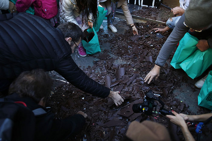 AP / La Voz de Michoacán París, Francia. Un escultor francés de chocolate celebró el sábado el 30 aniversario de la caída del Muro de Berlín dando un martillazo a una réplica hecha de chocolate de la infame barrera. Elaborado con 200 kilos (400 libras) de chocolate, el muro garabateado con las palabras “libertad” y, en alemán, “¡Soy berlinés!”, fue derribado sobre el pavimento frente a la chocolatería de Roger en París, deshaciéndose en cientos de pedazos, que fueron distribuidos a los transeúntes. https://twitter.com/omgboad/status/1193343430354755584 Simulando la manera en la que los berlineses martillaron el muro de concreto hace 30 años, el escultor Patrick Roger y un asistente atacaron la réplica con gusto. Rápidamente hicieron un hueco con sus martillos y estrecharon la mano extendida de alguien que estaba al otro lado. Los maravillados transeúntes mordisquearon los trozos y se llevaron bolsas enteras. Personas recogen los trozos de una réplica hecha de chocolate del Muro de Berlín en París, el sábado 9 de noviembre de 2019. (AP Foto/Thibault Camus) Roger dijo que se sintió “increíble compartir el sabor, los valores y un cierto aire de libertad”. “Es increíble, 200 kilos de chocolate se fueron en cuestión de minutos”.Patrick Roger, escultor. Entre los parisinos y turistas que presenciaron el espectáculo estaba Cécile Revéret, quien vivió durante unos años en Alemania Oriental antes del colapso del muro, un momento crucial en la caída del comunismo en Europa del Este. “Fue una idea magnífica. Por eso vine. Ahora tengo trozos del muro”, dijo Revéret. “No estuve ahí para la caída en 1989, pero con mi corazón apoyaba la reunificación y a todos los alemanes orientales con los que tuve oportunidad de convivir y quienes a veces mencionaban el muro con lágrimas en los ojos”.
