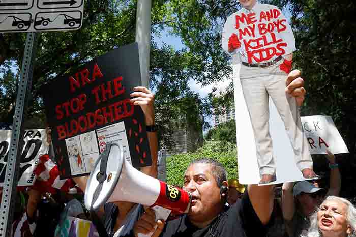 Alrededor de 500 manifestantes gritando «NRA vete» y «vergüenza, podrían ser tus hijos hoy», abuchearon mientras miles de miembros del mayor grupo de presión de armas del país se agolpaban en el centro de convenciones
