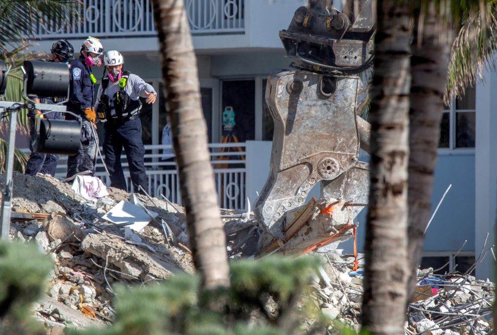 EFE / La Voz de Michoacán Miami. Dos cuerpos mas fueron extraídos de los escombros del edificio parcialmente derrumbado en Surfside (Miami-Dade) entre ellos el de la hija de 7 años de un bombero de la ciudad de Miami, confirmaron este viernes las autoridades. La alcaldesa de Miami-Dade, Daniella Levine Cava, actualizó las cifras de la operación de búsqueda y rescaste, que este viernes entra en su noveno día. A día de hoy hay 20 muertos, 188 personas localizadas, una cifra superior a la existente previamente, y la cifra de desaparecidos se eleva 120. Este jueves se reanudaron las tareas de búsqueda de víctimas tras 15 horas de interrupción, por miedo a posibles derrumbes en la parte que queda en pie del edificio Champlain Towers South, de 40 años de antigüedad. Foto: EFE.