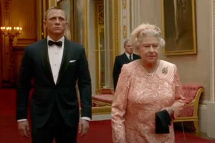 Aparece entonces en escena el actor Daniel Craig, el James Bond de entonces, que la invita a acompañarle. Ambos se montan en un helicóptero que sobrevuela Londres camino del anillo olímpico.