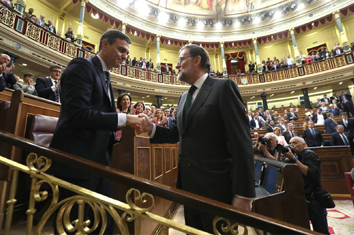 Notimex / La Voz de Michoacán Madrid. El socialista Pedro Sánchez Pérez-Castejón se convirtió hoy en el séptimo presidente del actual periodo democrático en España, al sustituir al conservador Mariano Rajoy en el cargo tras ganar una moción de censura en el Parlamento. El Congreso de los Diputados aprobó la moción promovida por el Partido Socialista Obrero Español (PSOE) contra Rajoy, debido a la sentencia del caso “Gürtel”, que vincula al Partido Popular como parte de una red de corrupción. La sustitución de Rajoy fue aprobada por 180 votos a favor, 169 en contra y una abstención, con lo que Sánchez se convierte en el nuevo presidente del gobierno. Sánchez (Madrid, 29 de febrero de 1972) es doctor en Economía y Empresa por la Universidad Camilo José Cela, donde ha ejercido de profesor. En 2013 publicó “La nueva diplomacia económica europea”, donde recogía y desarrollaba algunos de los contenidos de su tesis. Antes de su etapa como profesor universitario, ha sido asesor en el Parlamento Europeo (1998) y jefe de gabinete del Alto Representante de Naciones Unidas en Bosnia durante la Guerra de Kosovo (1999). A su vuelta a España trabajó como director de Relaciones Internacionales en la organización de consumidores OCU (2000) y fue asesor de Economía del comité federal del PSOE (2000-2004), mientras como autónomo ha sido consultor asesorando a empresas extranjeras. Se afilió al PSOE en 1993, y ha sido concejal en el Ayuntamiento de Madrid entre 2004 y 2009, y diputado por la circunscripción de Madrid del 2009 al 2011; labor que vuelve a ejercer desde enero de 2013 y hasta octubre de 2017. Fue el primer secretario general del PSOE elegido por el voto directo de la militancia en julio de 2014, y vuelto a elegir en las primarias celebradas en mayo de 2017. Sánchez lideró al PSOE en las elecciones generales de diciembre de 2015, tras la que intentó ser investido presidente del gobierno pero fracasó, y tras las elecciones de junio de 2016 en que obtuvo un peor resultado su partido entró en crisis hasta que fue destituido. Tras volver a la dirigencia socialista en mayo de 2017, Sánchez tuvo acercamiento con varios dirigentes políticos, incluso con Rajoy al que apoyó contra el proceso independentista en Cataluña. Los presidentes del actual periodo democrático son: Adolfo Suárez 1977-1981; Leopoldo Calvo Sotelo 1981-1982; Felipe González 1982-1996; José María Aznar 1996-2004; José Luis Rodríguez Zapatero 2004-2011, y Mariano Rajoy Brei 2011-2018. A diferencia de sus antecesores, Sánchez llega al cargo sin ser diputado en el momento de su asunción, pues renunció a su acta de parlamentario en octubre de 2016 cuando fue sustituido de la Secretaría General del PSOE.
