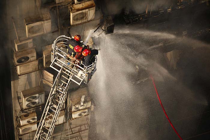 Agencias / La Voz de Michoacán Daca. Al menos 17 muertos y unos 50 heridos, por quemaduras, ha causado un devastador incendio registrado hoy en una torre de 19 pisos en el barrio de Banani, de la capital de Bangladesh. El fuego en la torre Banani FR ya fue controlado con varias unidades de bomberos y helicópteros, pero aun hay muchas personas desaparecidas, de acuerdo con la policía y los equipos de rescate, citados por el portal de noticias Banglanews24. Entre los 17 muertos figura un ciudadano de Sri Lanka, quien fue declarado muerto en el Hospital General de Kurmitola, mientras en el Hospital de United fallecieron otras tres personas debido a las graves quemaduras, señaló un vocero de la estación de policía de Banani. Hasta el momento se desconocen las causas del incendio, pero la policía y testigos señalaron que fue devastador, con las personas intentando salvar sus vidas por el exterior del edificio, bajando con dificultad por los cables del suministro eléctrico y saltando hacia el edificio contiguo y al vacío. Los equipos de rescate continúan sus labores, mientras los heridos son atendidos por quemaduras de diversos grados en los hospitales. En imágenes en redes sociales se ven las llamas y el humo negro saliendo del edificio y a cientos de personas en los alrededores del inmueble consternadas, observando la tragedia. Apenas el mes pasado unas 70 personas murieron en un incendio que devastó varios edificios de viviendas en Daca.