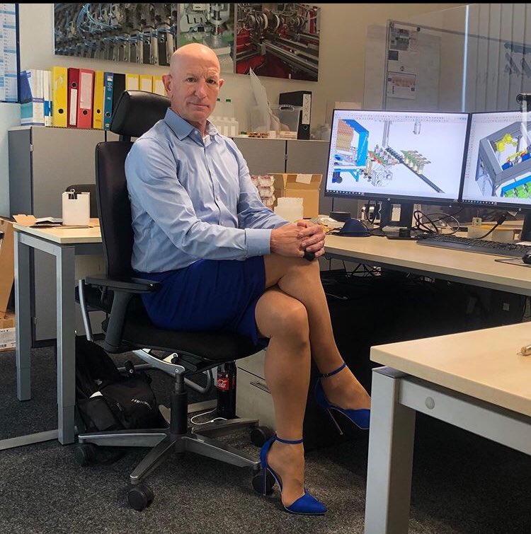 Alemania. Ingeniero en robótica estadounidense, quien trabaja en Alemania, se propuso cambiar la concepción de moda masculina vistiéndose con ropa de oficina, saco y corbata, pero en lugar de pantalón, opta combinar su atuendo con falda y facones.
