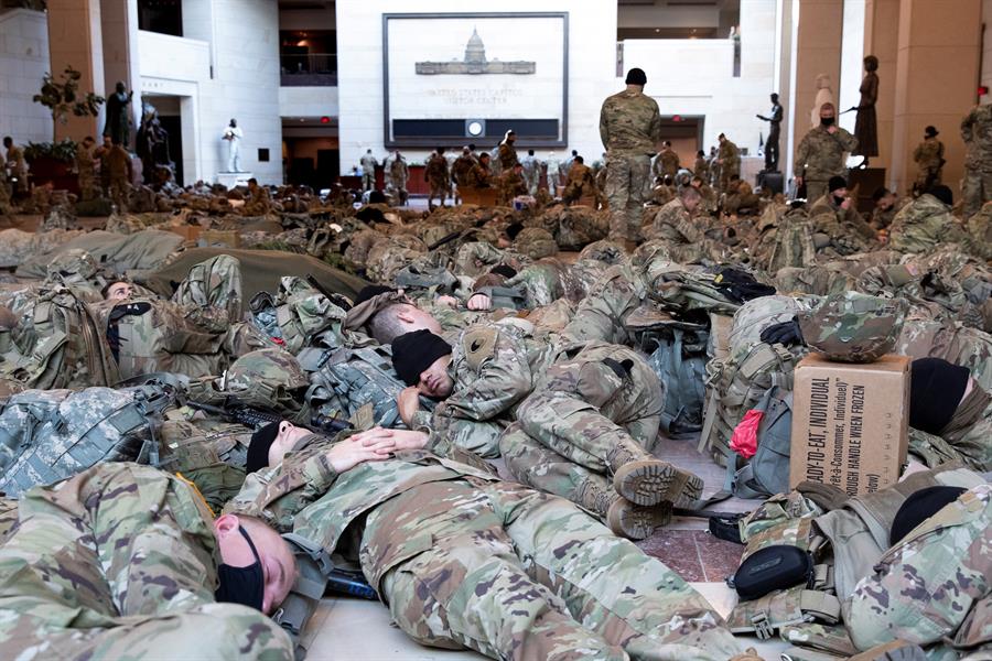 EFE / La Voz de Michoacán EUA. El presidente saliente de EE.UU., Donald Trump, pidió a sus seguidores no incurrir en "violencia" ni romper la ley en los próximos días, ante las múltiples informaciones que apuntan a nuevas concentraciones armadas antes de la investidura dentro de una semana del mandatario electo, Joe Biden. Ante las informaciones sobre nuevas manifestaciones, urjo a que no debe haber NADA de violencia, NADA de romper la ley y NINGÚN vandalismo de ningún tipo", dijo Trump en un comunicado difundido por la Casa Blanca. "Eso no es lo que yo defiendo, y no es lo que defiende Estados Unidos. Pido a TODOS los estadounidenses ayudar a rebajar las tensiones y calmar los ánimos. ¡Gracias!", añadió. El breve comunicado del presidente saliente llegó mientras la Cámara de Representantes se preparaba para acusarlo de "incitar" la insurrección de sus seguidores la semana pasada en el Capitolio, lo que obligará al Senado a someter a Trump a un segundo juicio político ("impeachment"). Foto: EFE. Efectivos de la Guardia Nacional estadounidense duermen en el interior del Capitolio en Washington DC Trump ha mandado mensajes contradictorios sobre el asalto de sus seguidores al Capitolio: durante el ataque los describió como "gente muy especial", pero después intentó distanciarse de ellos y condenar la violencia. Este martes, Trump evitó asumir ningún tipo de responsabilidad por lo ocurrido y defendió como "totalmente apropiado" el discurso que dio antes del asalto al Capitolio, en el que instó a sus seguidores a dirigirse al Congreso para evitar que los legisladores ratificaran la victoria de Biden. Su nuevo mensaje llega dos días después de que el Buró Federal de Investigación (FBI, en inglés) advirtiera que seguidores radicales de Trump planean "protestas armadas" previstas en todos los 50 estados del país entre el día 16 y el 20, cuando tomará posesión Biden. Los grupos extremistas, que tras el cierre de miles de sus cuentas en Twitter y el bloqueo a la red social conservadora Parler han comenzado a coordinarse en aplicaciones encriptadas de mensajería como Telegram, también han amenazado con un posible nuevo asalto al Capitolio o a las sedes de los Congresos estatales. Pese a la petición de Trump de evitar la violencia, algunos analistas creen que el mandatario saliente ha envalentonado todavía más a los extremistas con sus afirmaciones de este martes de que el juicio político que se está preparando en el Congreso está generando mucho "enfado" en el país. La violencia de la semana pasada ha llevado a reforzar al máximo la seguridad en Washington, y se espera que antes de la investidura estén activados más de 20.000 miembros de la Guardia Nacional, que ya protegen el Capitolio desde hace días.