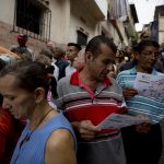 Mundo | 15 Oct, 2017, 21:57 Venezolanos eligen a gobernadores La Voz de Michoacán. Las últimas noticias, hoy. Foto: AP. Un hombre espera en fila para emitir su voto en las elecciones regionales, por un muro cubierto con el mensaje en español: "Su voto legitima la dictadura", fuera de un colegio electoral en Caracas, Venezuela. - + Foto: AP. Los votantes esperan en fila para emitir su voto para las elecciones regionales fuera de una mesa de votación en Caracas, Venezuela. Foto: AP. Los votantes escuchan las instrucciones de un soldado nacional bolivariano mientras esperan afuera de una mesa de votación para emitir su voto durante las elecciones regionales en Caracas, Venezuela. Foto: AP. Una mujer pone el rostro en blanco con las instrucciones de voto mientras espera en fila afuera de una mesa de votación para emitir su voto durante las elecciones regionales en Caracas, Venezuela. Foto: AP. La gente lee las instrucciones de votación mientras esperan a emitir su voto para las elecciones regionales fuera de una mesa de votación en Caracas, Venezuela, el domingo 15 de octubre de 2017. Foto: AP. Un hombre espera en fila para emitir su voto en las elecciones regionales, por un muro cubierto con el mensaje en español: «Su voto legitima la dictadura», fuera de un colegio electoral en Caracas, Venezuela. Foto: AP. Los simpatizantes del candidato gubernatorial a favor del gobierno del estado Miranda, Héctor Rodríguez, golpean y gritan insultos contra el candidato opositor Carlos Ocariz cuando llega a una mesa electoral durante las elecciones regionales en Caracas, Venezuela, el domingo 15 de octubre de 2017. Foto. AP. Los votantes esperan en fila para emitir su voto para las elecciones regionales fuera de una mesa de votación en Caracas, Venezuela, el domingo 15 de octubre de 2017. PUBLICIDAD