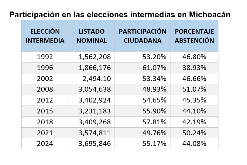 Columna | Araceli Gutiérrez Cortés La participación ciudadana, tiene una connotación mucho más extensa que ese mercado de votos que se traduce en ir a la casilla electoral una vez cada tres años; la política y los políticos, hoy se encuentran en la disyuntiva de la participación como un elemento clave para la toma de decisiones en el país. A su vez, esta figura es frecuentemente relacionada con la democracia, porque la democracia está basada en la participación de los individuos en los asuntos de su comunidad y las y los ciudadanos la expresan a través del voto. Lo cierto es que, desde su origen, la democracia fue considerada como una forma de gobierno donde las decisiones políticas eran tomadas por las mayorías, aunque sí hay que decir que, esta no siempre gozó de buen prestigio; pues en el mundo antiguo, había diferentes rangos sociales, que se identificaban no solo con el pueblo sino también con la aristocracia o con la monarquía, se decía que cuando el poder se depositaba en la democracia era ejercido solo para ventaja de los pobres. Y estos, aunque fuesen la mayoría, no eran la totalidad. Las opiniones a favor comienzan a reflejarse cuando la democracia se opuso a la monarquía, pues era preferible que el poder estuviese repartido entre los ciudadanos que acaparado por un individuo. Al final, la mejor virtud de la democracia no es propiamente la eficiencia, ni la prontitud, sino la libertad que se consigue con la participación de los ciudadanos. No obstante, la ciudadanía mexicana y michoacana ha reflejado altos porcentajes de abstencionismo a la hora de tomar de decisiones en las urnas. Si revisamos los porcentajes de participación ciudadana desde que se creó el entonces IFE en 1990, tuvimos en el año 1994, un máximo histórico de participación ciudadana que no hemos vuelto a alcanzar, con el 77.16%. Esas fueron las primeras elecciones en las que el Secretario de Gobernación no encabezó los trabajos del proceso electoral. Veamos en la tabla, cómo se ha comportado el voto en las elecciones locales en Michoacán. La participación ciudadana a nivel local es menor que la participación a nivel nacional. Nuestro histórico de participación en lo local se dio en las elecciones de 1996 con apenas el 61.07%. Desde entonces, Michoacán comenzó con una tendencia a la baja y reflejó una caída importantísima entre 2018 y 2021, aunque con una recuperación franca en el 2024, aún se mantiene por debajo de la media nacional. Si tomamos como parámetro los porcentajes de participación de las entidades donde hubo elecciones en el año 2024, Michoacán se posiciona entre los 8 estados con menor participación ciudadana, junto con los dos Estados de Baja California, Sonora, Chihuahua, Jalisco, Durango y Sinaloa. Entonces con base en esto, quiero destacar que en las últimas elecciones en el estado de Michoacán hubo una participación del 55.17%, en otras palabras, el 45% de los ciudadanos decidió no ir a votar. En las últimas elecciones federales, la participación fue de casi el 61% y si nosotros contrastamos estos números con los ranking de confianza que los ciudadanos tienen en las instituciones, donde los partidos políticos tienen una calificación reprobatoria y son los peor evaluados en los últimos tres o cuatro años; si vemos la encuesta sobre percepción de inseguridad y vemos que más del 58% de las personas se sienten inseguras en su ciudad; si damos un vistazo a la cifra negra y vemos que más del 92% de los delitos que se cometen en el país no se denuncian y que de aquellos que se denuncian, en más del 50% no pasa nada. Hay un estudio reciente de Otto Granados que arroja unas cifras escalofriantes y dice que, en México, solamente el 25% de los ciudadanos considera que debe respetarse la ley, es decir, el 75% de los ciudadanos valida la no observación de la ley, como los ciudadanos están insatisfechos creen que se vale, violar la ley. En tal sentido, la suscrita afirma, que la participación de la ciudadanía está íntimamente ligada a su percepción de seguridad, de salud, de educación, de empleo, a su calidad de vida, etc., por ello, considero que no serán los órganos electorales quienes cambien el interés de participación de la ciudadanía, pues tendrá que ser una inercia generada por un mejor gobierno en los tres niveles, en los tres poderes.