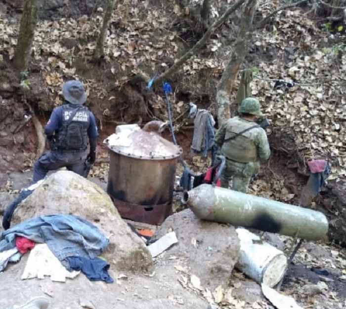 Redacción / La Voz de Michoacán Michoacán. Personal operativo de la secretarías de Seguridad Pública (SSP), y de la Defensa Nacional (Sedena), localizaron y destruyeron un laboratorio para la elaboración de drogas sintéticas en este municipio. La acción operativa tuvo lugar en una zona montañosa, entre las comunidades de El Devanador y San Antonio Villalongín, en la cual los elementos policiales y castrenses ubicaron el laboratorio. En la zona fueron localizados diferentes objetos para la elaboración de metanfetamina, mismos que fueron destruidos en el lugar. Lo asegurado: •2 reactores •8 secadoras •9 quemadores •35 tinas color café vacías •5 tanques estacionarios •30 tinacos azules vacíos •40 tinacos blancos •50 cubetas de 20 litros vacías •6 calderas vacías