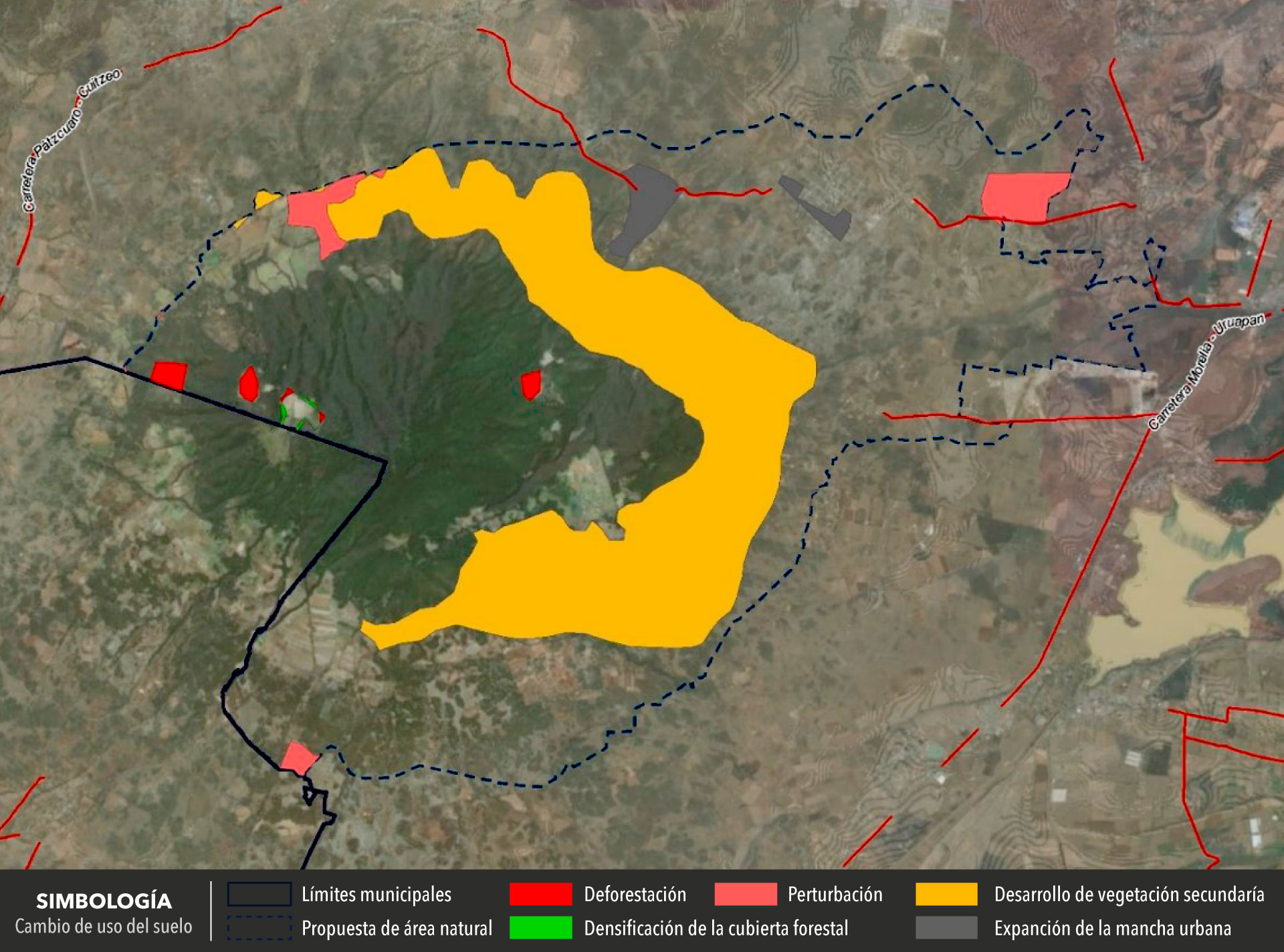 En un análisis del cambio de uso del suelo, realizado por el Instituto Municipal de Planeación de Morelia mediante la interpretación de imágenes satelitales, se estimó que en 18 años (de 2000 a 2018), la mancha urbana creció 70.53 hectáreas dentro del área del Cerro del Águila. Asimismo, se perturbaron 104 hectáreas y se deforestaron otras 26.62.